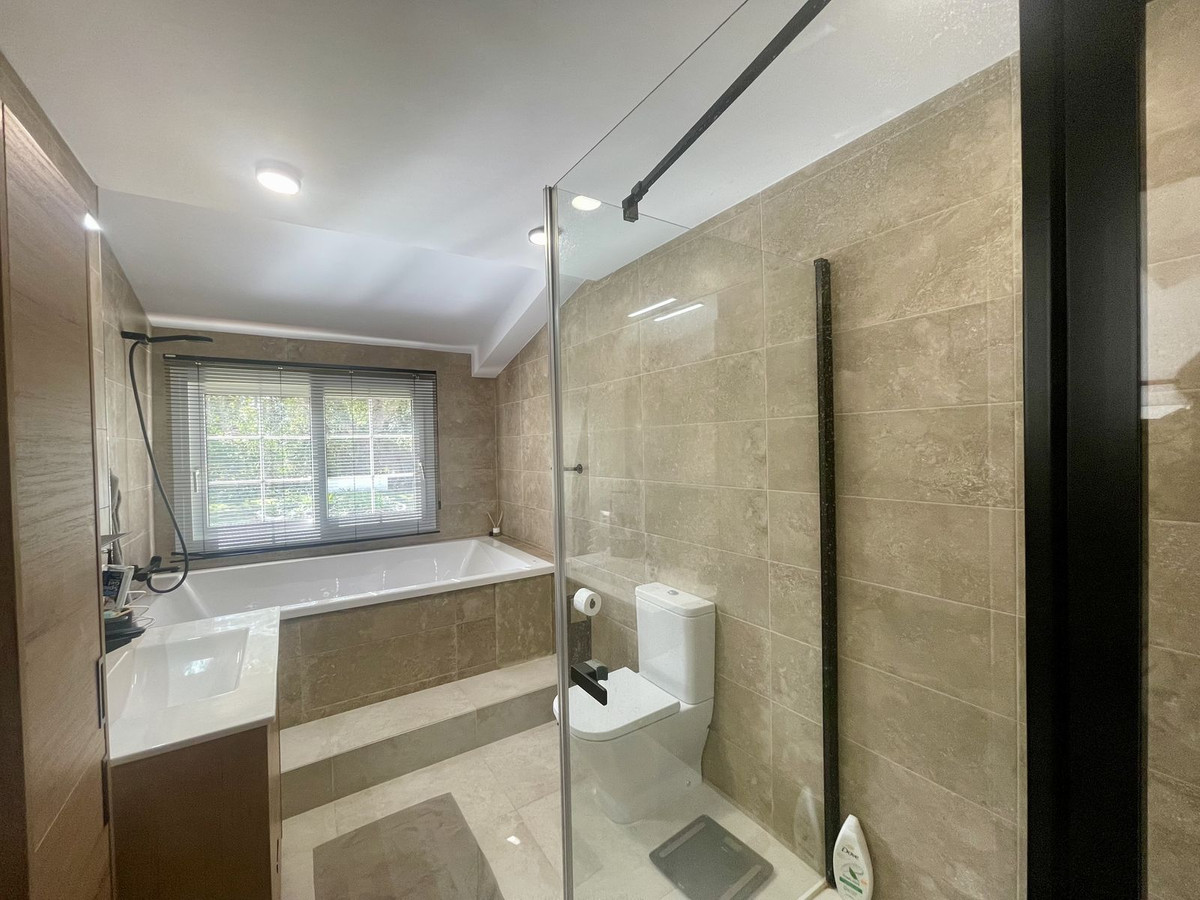 À l'extérieur, la propriété bénéficie d'un vaste jardin privé offrant un espace généreux pour les repas en plein air, les jeux ou d'éventuels aménagements futurs. Des mètres carrés supplémentaires restent disponibles et pourraient être intégrés à la surface habitable. Un projet est en cours pour l'ajout de deux salles de bains, permettant ainsi à chaque chambre d'en disposer d'une suite. Une petite casita située dans le jardin peut être rénovée pour créer une suite d'invités, un studio ou un espace de rangement. Le terrain permet la construction d'une piscine privée, et 15 des 22 maisons voisines en sont déjà équipées. Une piscine commune avec transats est située juste à côté pour plus de commodité.