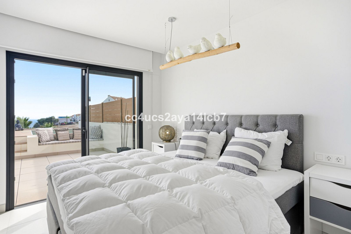 L'un des atouts majeurs de cette maison réside dans ses deux vastes terrasses, l'une à l'avant et l'autre à l'arrière. La terrasse avant offre une vue imprenable sur la mer, parmi les plus belles de la côte, où, par temps clair, on peut même admirer les sommets enneigés de la Sierra Nevada. Cette terrasse est également équipée de stores électriques, qui procurent ombre et confort d'une simple pression sur un bouton, tandis que la terrasse arrière est dotée de volets pour plus d'intimité et de sécurité. La terrasse avant comprend également un bassin privé, idéal pour se rafraîchir tout en profitant du paysage.