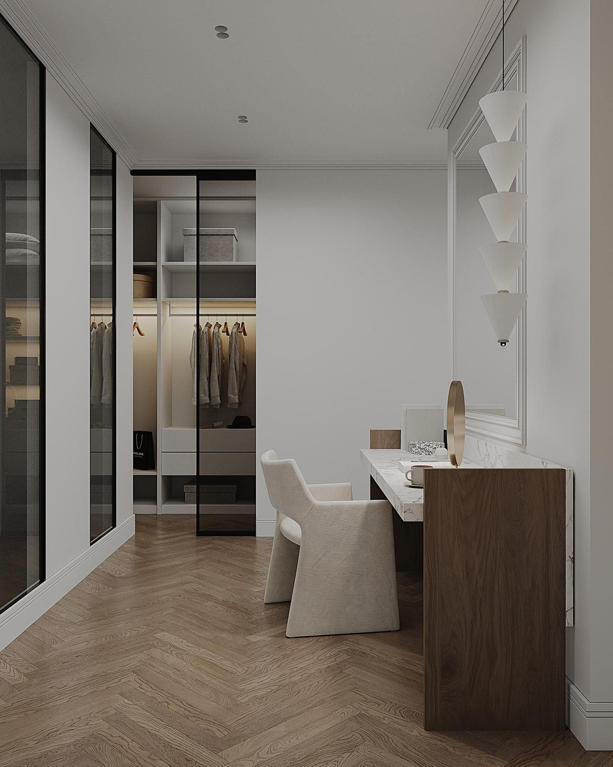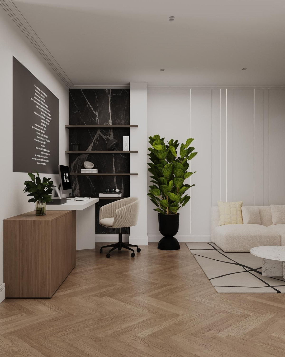 Cet appartement de plain-pied a été entièrement rénové et conçu dans un souci de confort et d'élégance. Il comprend quatre chambres et trois salles de bains, ainsi qu'un WC invités idéalement situé près de l'entrée. On y trouve également un espace bureau, un dressing dans la suite parentale, une magnifique cheminée dans le salon et même une cave à vin sur mesure – le tout réalisé avec des matériaux haut de gamme et un souci du détail exceptionnel. De larges fenêtres inondent l'espace de lumière naturelle et donnent sur une spacieuse terrasse surplombant les jardins paysagers de la résidence.