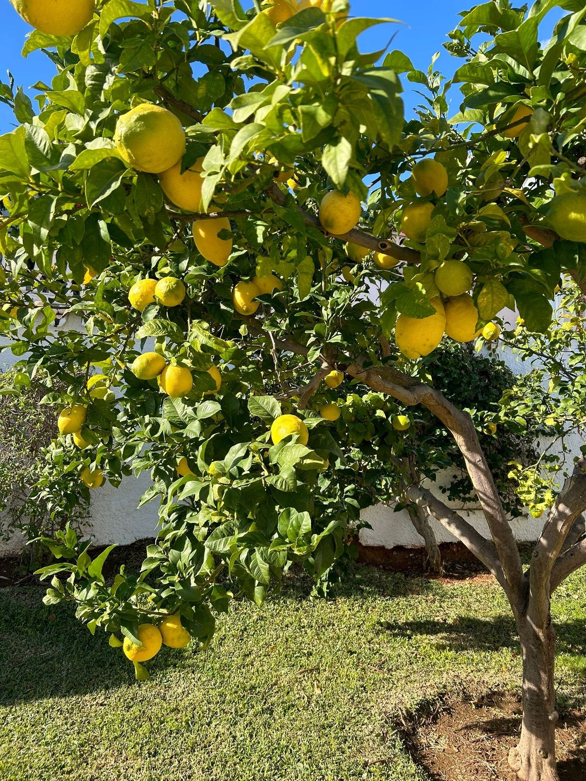 À l'extérieur, vous découvrirez de jolis jardins bien entretenus avec des citronniers matures ; à l'arrière de la propriété se trouvent la piscine et le solarium, très privés, où vous pourrez vous détendre en toute intimité.