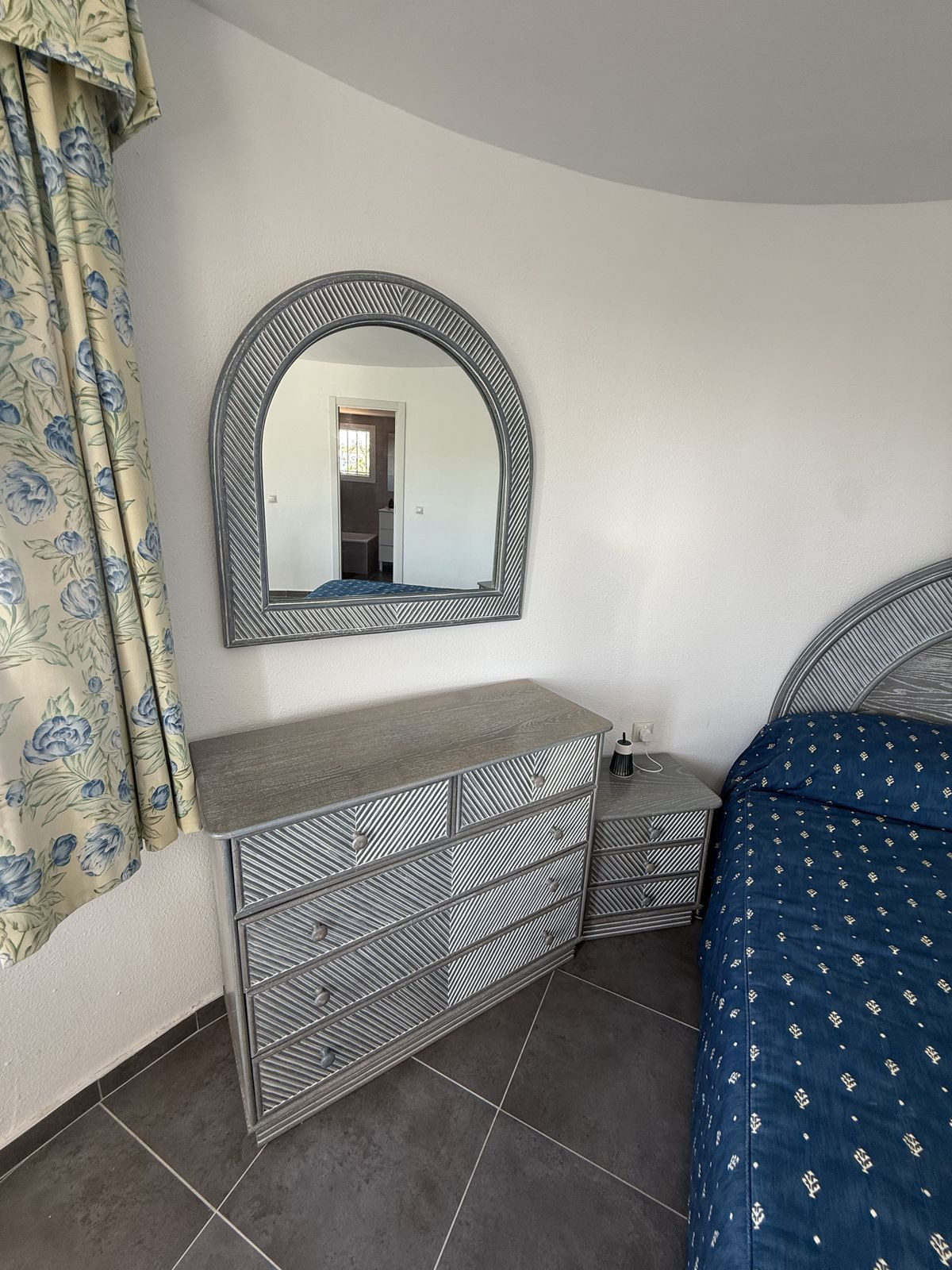 Au premier étage se trouvent la chambre principale et la salle de bains attenante récemment rénovée, offrant toutes deux une vue spectaculaire sur la mer.