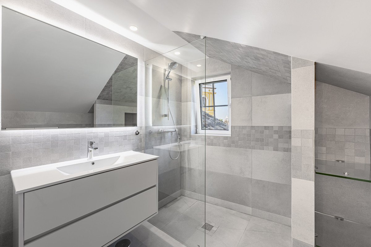 Le dernier étage est occupé par une suite mansardée avec terrasse privée et vue sur la mer.