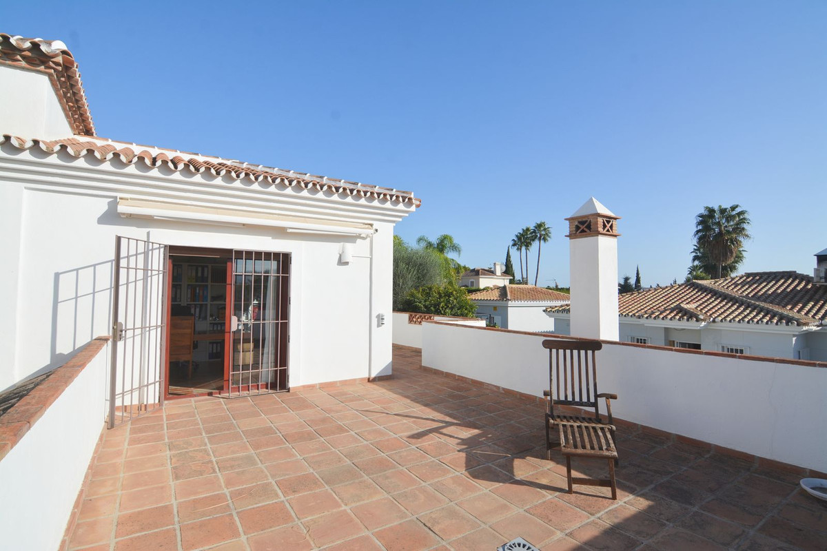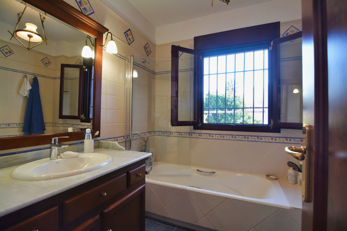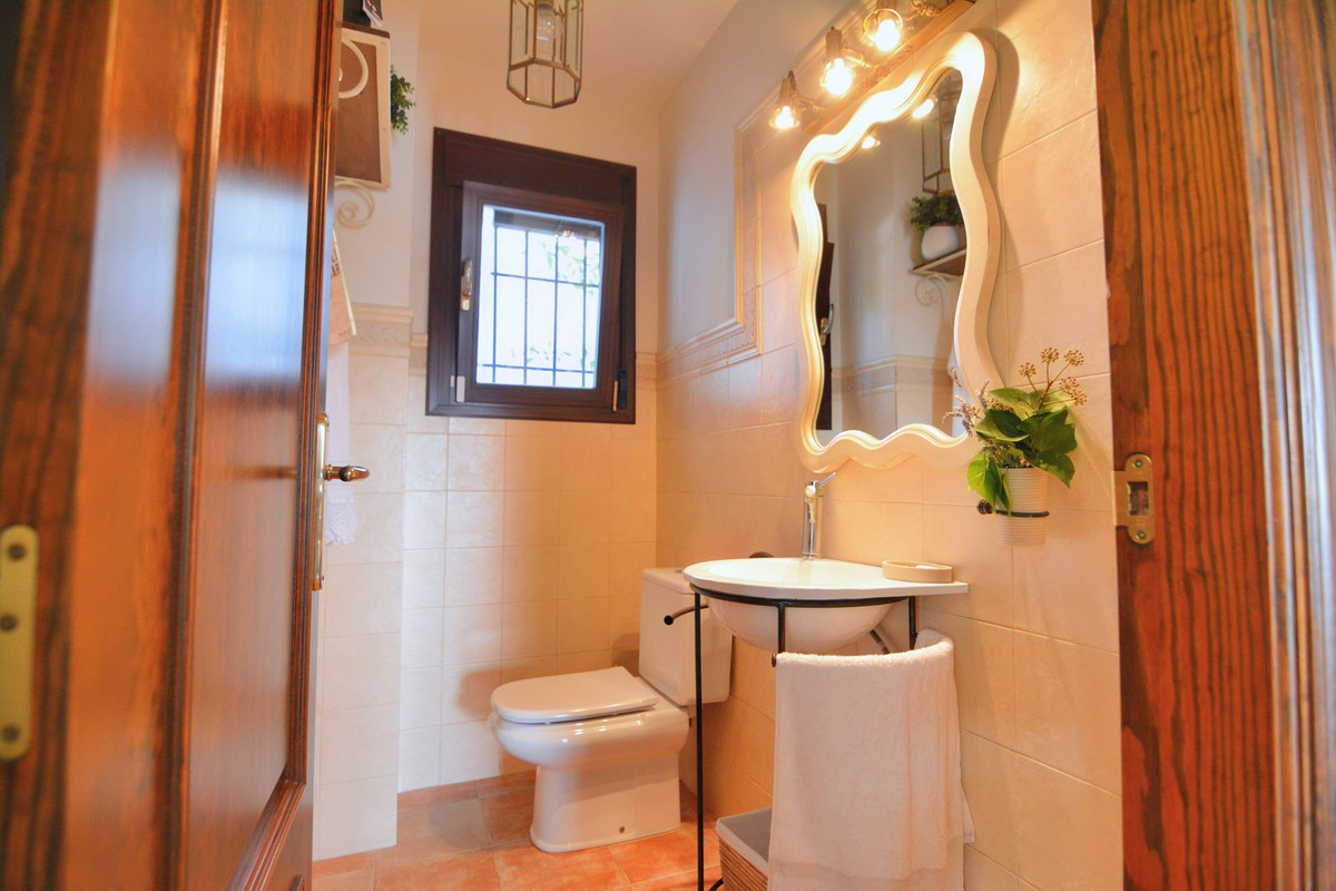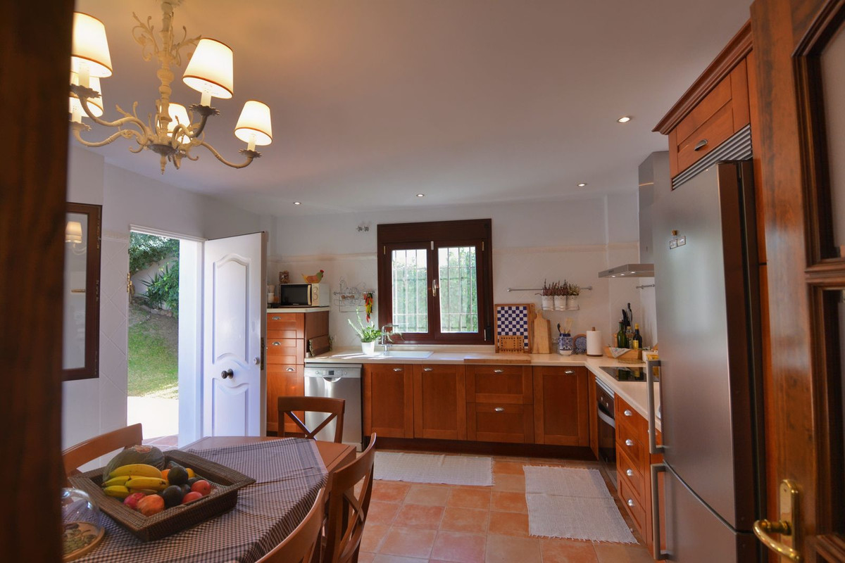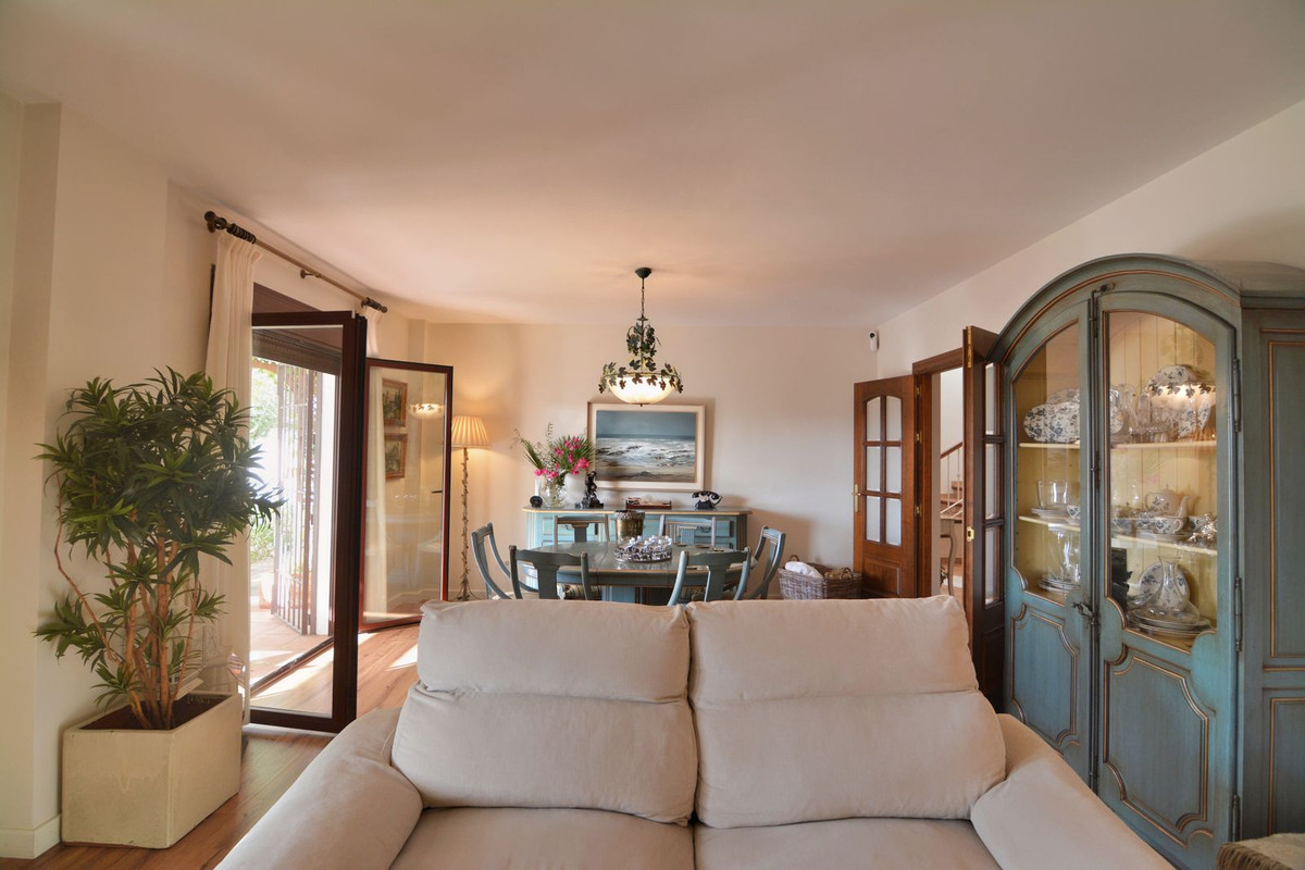 La propriété se situe sur un terrain de 858 m² avec un jardin arboré et une piscine privée, idéal pour profiter du climat ensoleillé de la Costa del Sol. Au rez-de-chaussée, un séjour spacieux et lumineux, donnant directement sur une véranda couverte, invite à la détente et aux moments conviviaux en plein air. La cuisine indépendante, grande et fonctionnelle, s'ouvre sur une charmante terrasse arrière, parfaite pour les petits-déjeuners ensoleillés. Ce niveau comprend également des toilettes invités.