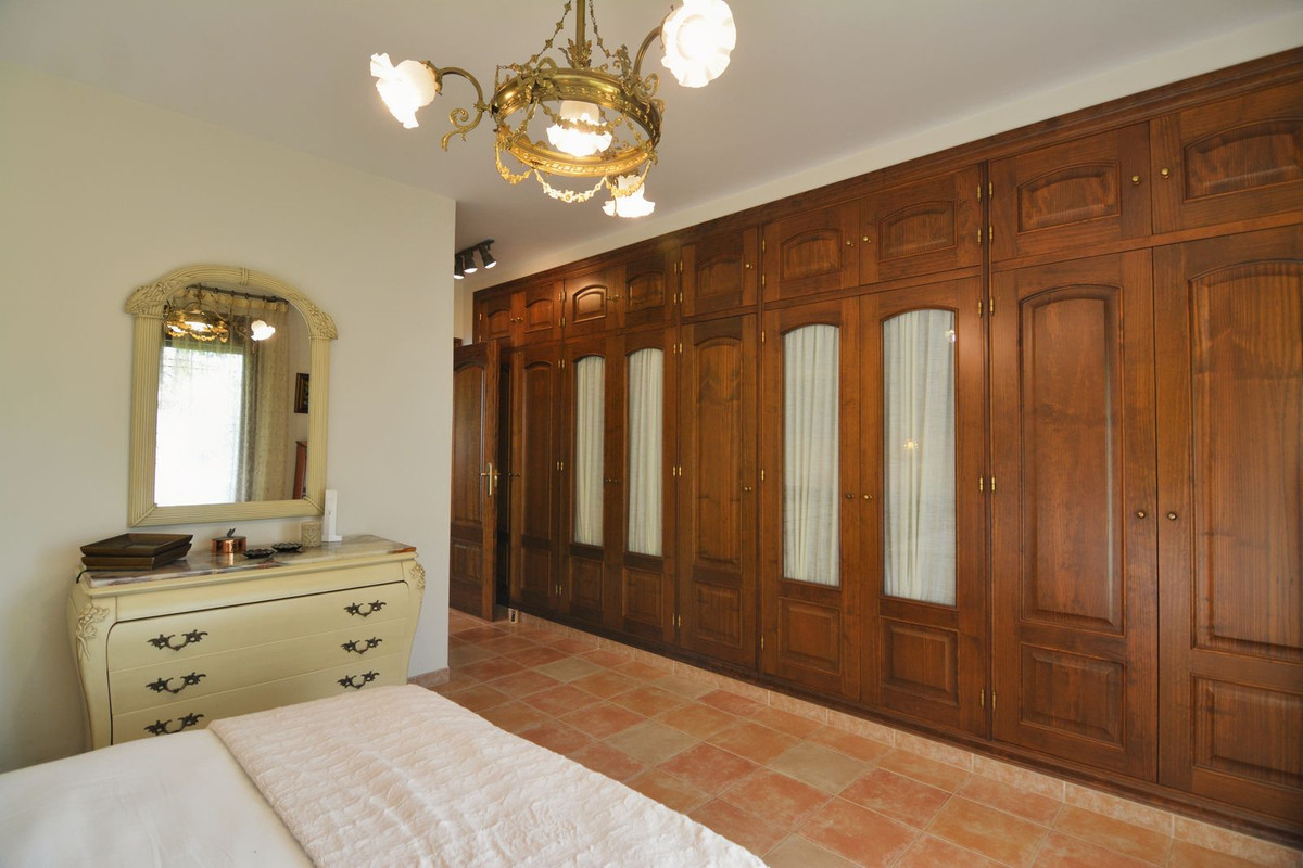 À l'étage, la suite parentale se distingue par sa grande fenêtre et sa salle de bains privative. Les trois autres chambres sont lumineuses et spacieuses ; l'une d'elles, actuellement aménagée en bureau, bénéficie d'une magnifique terrasse privée de 40 m² offrant une vue imprenable sur le jardin, la piscine et les montagnes – un lieu idéal pour admirer de superbes couchers de soleil. Cet espace est équipé de raccordements à l'eau et à l'électricité, ce qui permet de l'aménager facilement en pièce à vivre supplémentaire.