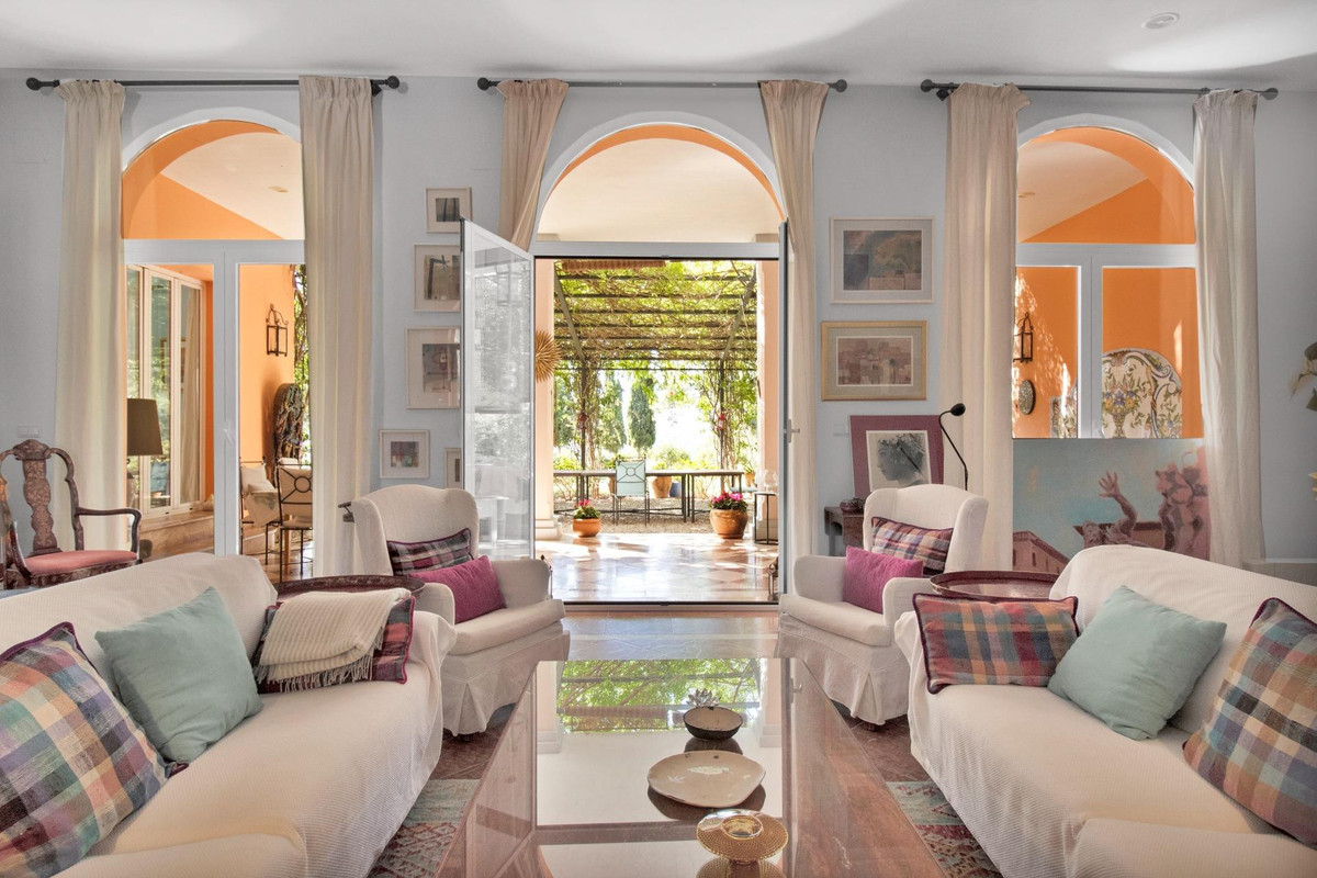 Une maison de campagne unique, nichée dans un écrin de verdure luxuriante, entourée de plantes vivaces et offrant une vue imprenable sur l'horizon. Unique par son esthétique, qui évoque une villa toscane, elle est conçue pour la vie de famille, avec de vastes espaces baignés de lumière où intérieur et extérieur se fondent harmonieusement, où la lumière et le paysage sont les maîtres mots. Unique également par sa modernité et son autonomie énergétique, cette maison offre un confort exceptionnel en toute saison. Chauffage au sol, climatisation… Ces équipements sont assurés par une importante installation de panneaux solaires de plus de 56 m² (stratégiquement placée et invisible de l'extérieur), une installation solaire de 24 kW, deux convertisseurs de 10 kW et une batterie de 20 kW, ainsi qu'une borne de recharge pour véhicule électrique. De plus, la propriété bénéficie d'un approvisionnement en eau par puits, la région étant riche en eau. Une rivière coule à proximité, offrant la possibilité de se baigner en été. Construite en 2000, la maison est orientée plein sud. La maison comprend sept chambres avec salles de bains privatives et plusieurs espaces polyvalents (bureau, atelier, bibliothèque, etc.). Elle est entourée d'un vaste jardin luxuriant, d'une grande pelouse et d'une charmante piscine avec de larges terrasses ensoleillées et un bain de glace pour les plus courageux. À l'arrière, on trouve un grand potager et un poulailler. Une allée privée, bordée de cyprès, mène à la maison et offre un grand parking. La porte principale s'ouvre sur un hall d'entrée lumineux qui dessert le salon avec de grandes portes vitrées. Attenante, une généreuse terrasse couverte se transforme en pièce à vivre en été. Une salle à manger séparée communique avec la cuisine allemande SieMatic entièrement équipée, ainsi qu'avec un cellier comprenant trois réfrigérateurs et un congélateur. La cuisine et la salle à manger s'ouvrent sur une terrasse exposée à l'est, aménagée avec une cuisine d'été. La vue sur la Sierra Crestellina y est à couper le souffle. L'autre aile du rez-de-chaussée abrite une bibliothèque ou une salle de télévision, entièrement équipée d'étagères. On y trouve également une grande chambre d'amis avec cheminée, placards intégrés et salle de bains privative. Cette chambre donne sur le jardin. Au premier étage se trouve un palier spacieux pouvant servir de salon supplémentaire ou d'atelier d'artiste. La grande suite parentale, avec son plafond mansardé, comprend un dressing avec puits de lumière et une salle de bains privative. Les fenêtres offrent une vue sur les jardins et la profusion de fleurs qui ornent la terrasse couverte du rez-de-chaussée. La suite parentale communique avec une autre chambre dotée d'une salle de bains. Cette dernière peut servir d'annexe à la suite principale, mais est également accessible depuis le palier et peut être utilisée comme chambre indépendante. À ce même étage se trouvent également un grand bureau (ou chambre supplémentaire) avec étagères intégrées et, de l'autre côté du palier, deux autres chambres avec salle de bains privative.Le rez-de-jardin, d'une superficie de plus de 300 m², comprend une buanderie, un grand atelier/studio, une cave, un débarras et un local technique. À l'est se trouve un appartement de service avec cuisine-séjour, chambre, salle de bains et terrasse et jardin privatifs. Une autre grande suite d'invités, avec salle de bains et kitchenette, s'ouvre également sur le jardin. Cette luxueuse maison de campagne à vendre en Andalousie offre de nombreux atouts : piscine extérieure, trois cheminées, arrosage automatique des jardins, parquet et sols en travertin, fenêtres à double vitrage et espace barbecue. Carrelage décoratif portugais. De vastes espaces sont aménagés pour un potager. L'eau provient d'un puits privé. Cette propriété exclusive est située à seulement 15 minutes de Gaucin, 30 minutes de la plage, 45 minutes de Marbella et Sotogrande, et à 1h30 de l'aéroport international de Malaga.