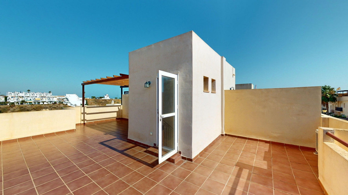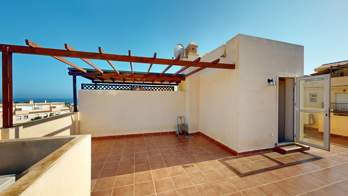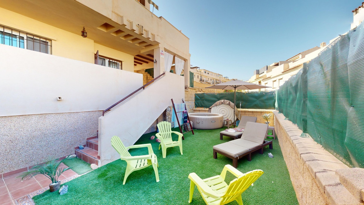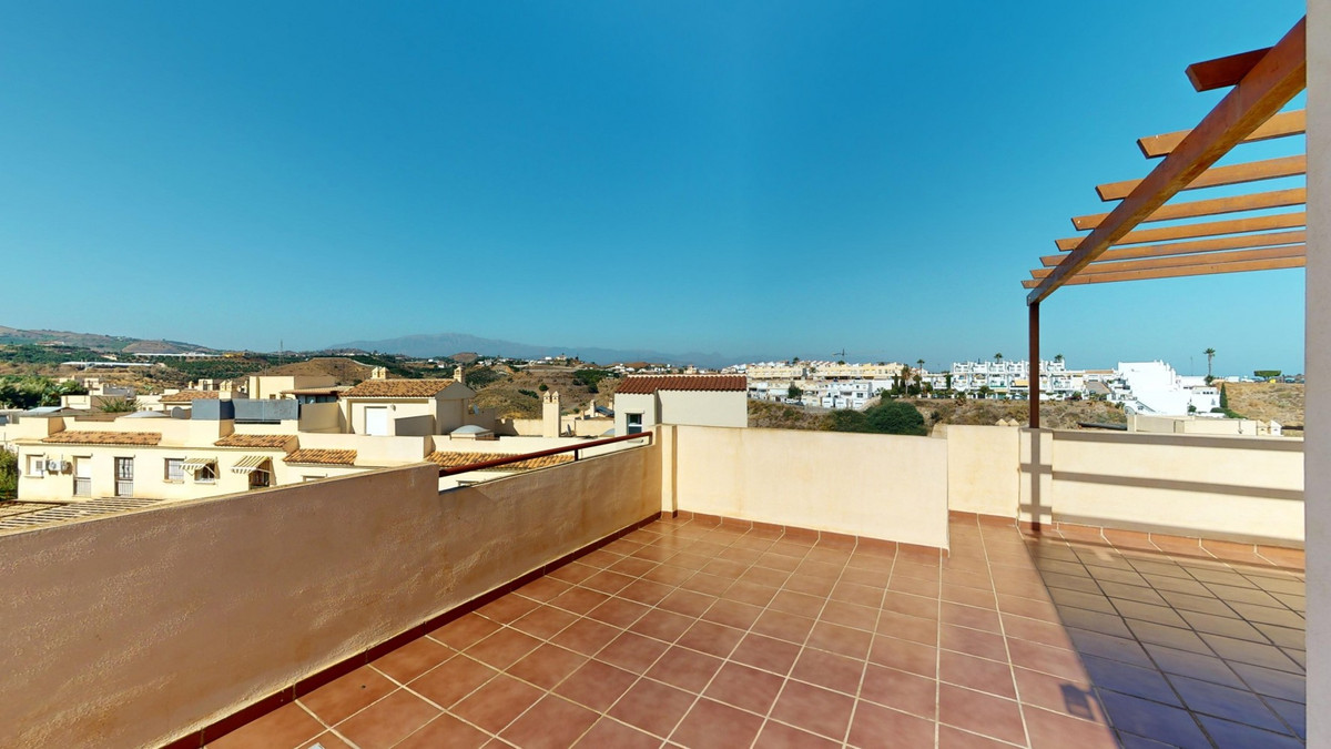 Cette charmante maison d'angle, située dans le quartier résidentiel prisé de Valle Niza, offre un cadre de vie chaleureux empreint d'une touche méditerranéenne. Répartie sur deux niveaux et dotée d'une spacieuse terrasse sur le toit offrant une vue imprenable sur la mer, cette propriété réunit tout le confort nécessaire pour profiter pleinement du soleil andalou. Le rez-de-chaussée comprend une cuisine fonctionnelle et bien équipée, ainsi qu'un lumineux séjour/salle à manger avec accès direct à la terrasse, idéale pour les repas en plein air ou les moments de détente. Un WC complète ce niveau. À l'étage, vous trouverez la suite parentale avec salle de bains privative et accès à une terrasse privée, parfaite pour savourer la fraîcheur matinale. Trois autres chambres, dont une avec accès à la terrasse, offrent un espace généreux pour la famille ou les invités. Une deuxième salle de bains est également disponible. La maison est climatisée et dispose de placards intégrés pour un confort optimal et de nombreux rangements. La terrasse sur le toit offre de multiples possibilités d'aménagement, que ce soit pour bronzer ou savourer un apéritif relaxant au coucher du soleil face à la mer. Entourée d'une vaste terrasse sur trois côtés, la maison bénéficie de toujours un coin d'ombre agréable. Un petit jardin en contrebas de la terrasse offre un accès direct à la piscine commune, située à quelques pas. La résidence propose également cinq piscines supplémentaires, des terrains de tennis et de basketball, ainsi que des aires de jeux pour enfants. Cette propriété est idéale pour les familles ou comme résidence secondaire pour ceux qui recherchent une vie paisible au sein d'une communauté méditerranéenne conviviale. Nous serons ravis de vous présenter prochainement ce bien d'exception, en personne ou par visite virtuelle. Car ce monde est unique, à l'image de notre Axarquía. En Andalousie. Sur la Costa del Sol. Ici, sous le soleil…