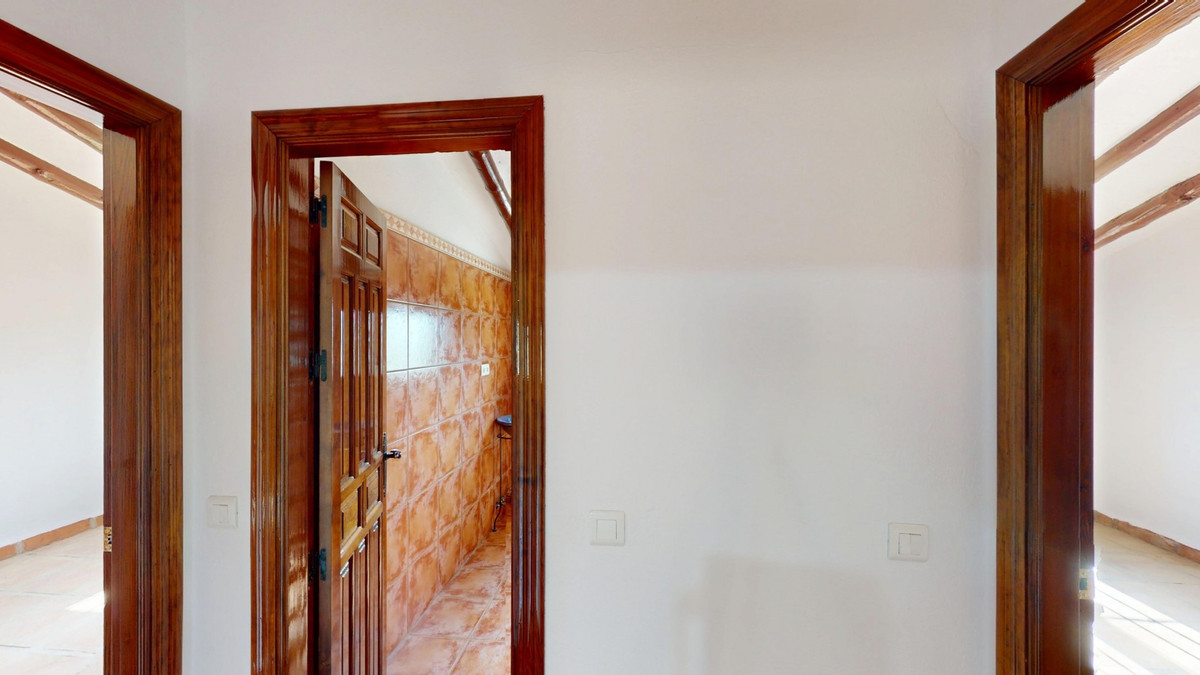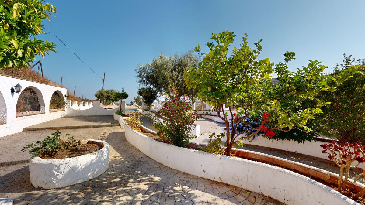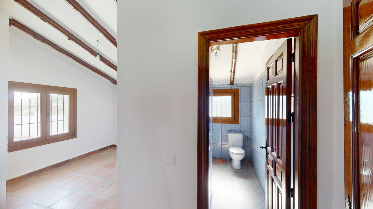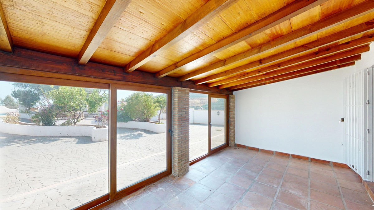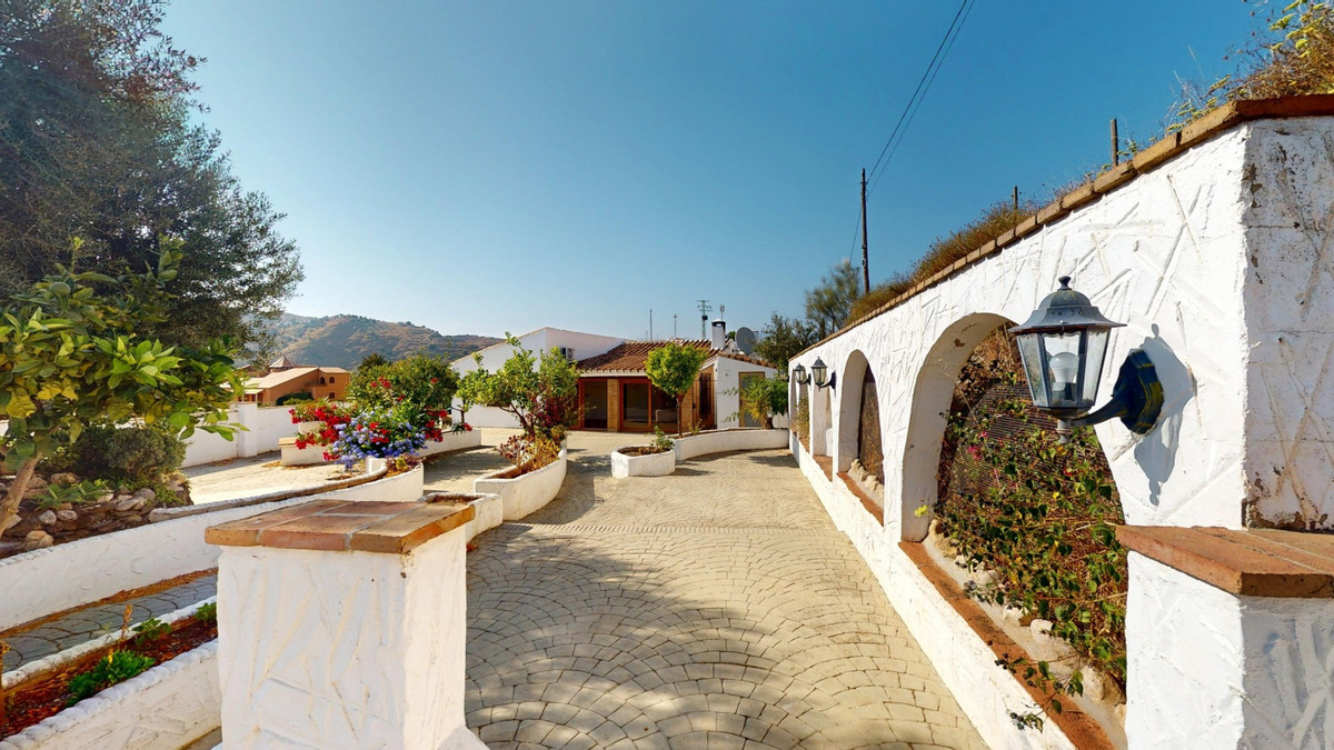 This delightful Spanish villa, located in Viñuela, Málaga, offers a perfect blend of traditional charm and modern comfort. The single-story property spans 167 m2 and features three bedrooms, including a spacious 13.9 m2 primary bedroom, and two bathrooms. Upon entering, you're greeted by the home's most striking feature: beautiful terracotta tile flooring that runs throughout, creating a cohesive and authentic Spanish ambiance. The living areas are characterized by their high, sloping ceilings with exposed wooden beams, adding rustic charm and visual interest to the space. The heart of the home is undoubtedly the living room, which boasts a magnificent stone fireplace as its centerpiece. Large windows and glass doors in this area, as well as in the bedrooms, allow ample natural light to flood the interiors while offering picturesque views of the surrounding landscape. The kitchen presents a harmonious blend of traditional and contemporary design. Modern appliances and sleek cabinetry are juxtaposed against the rustic ceiling beams, creating a functional yet aesthetically pleasing culinary space. The bathrooms, while not extensively detailed in the images, appear to have been updated with modern fixtures. Storage is thoughtfully incorporated throughout the home, with built-in wooden wardrobes in the bedrooms that maintain the overall rustic aesthetic. The property also features two patios, offering delightful outdoor spaces for relaxation and entertainment. A unique aspect of this villa is its attention to decorative details, such as the ornate tile borders in the hallways and bathrooms, which add a touch of traditional Spanish flair to the otherwise simple and elegant interiors. Outside, the villa boasts a beautiful pool and a charming outdoor area perfect for enjoying the  Mediterranean climate. Overall, this Málaga villa offers a warm, inviting atmosphere that beautifully marries traditional Spanish architectural elements with modern comforts, creating a truly special living space. We are pleased to be able to present this dream property to you soon, either personally or via virtual viewing. Because this world is unique - just like our Axarquía. In Andalusia. On the Costa del Sol. Here, on the sunny side of life...