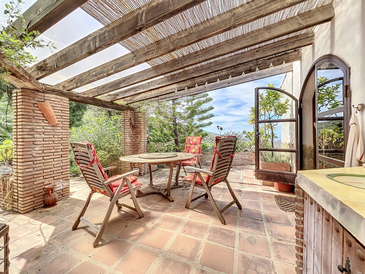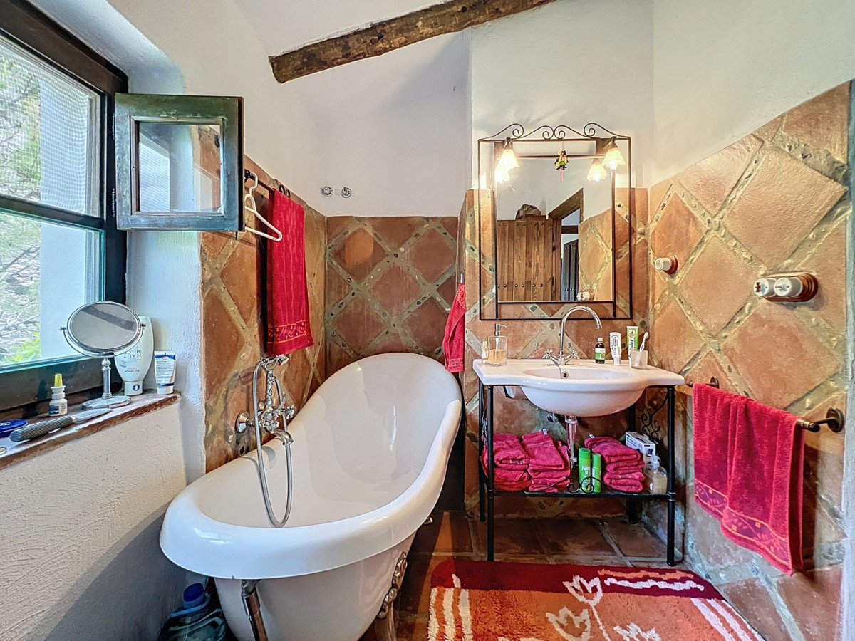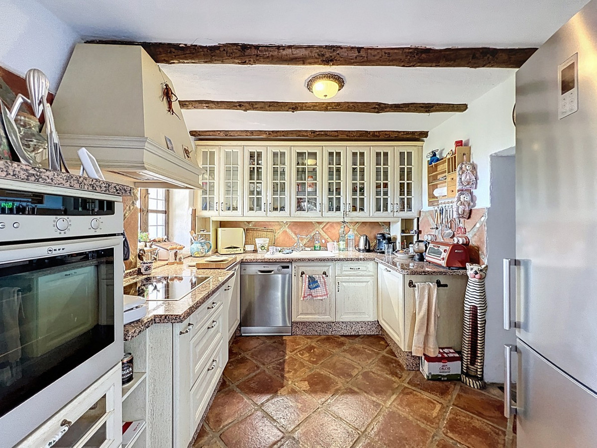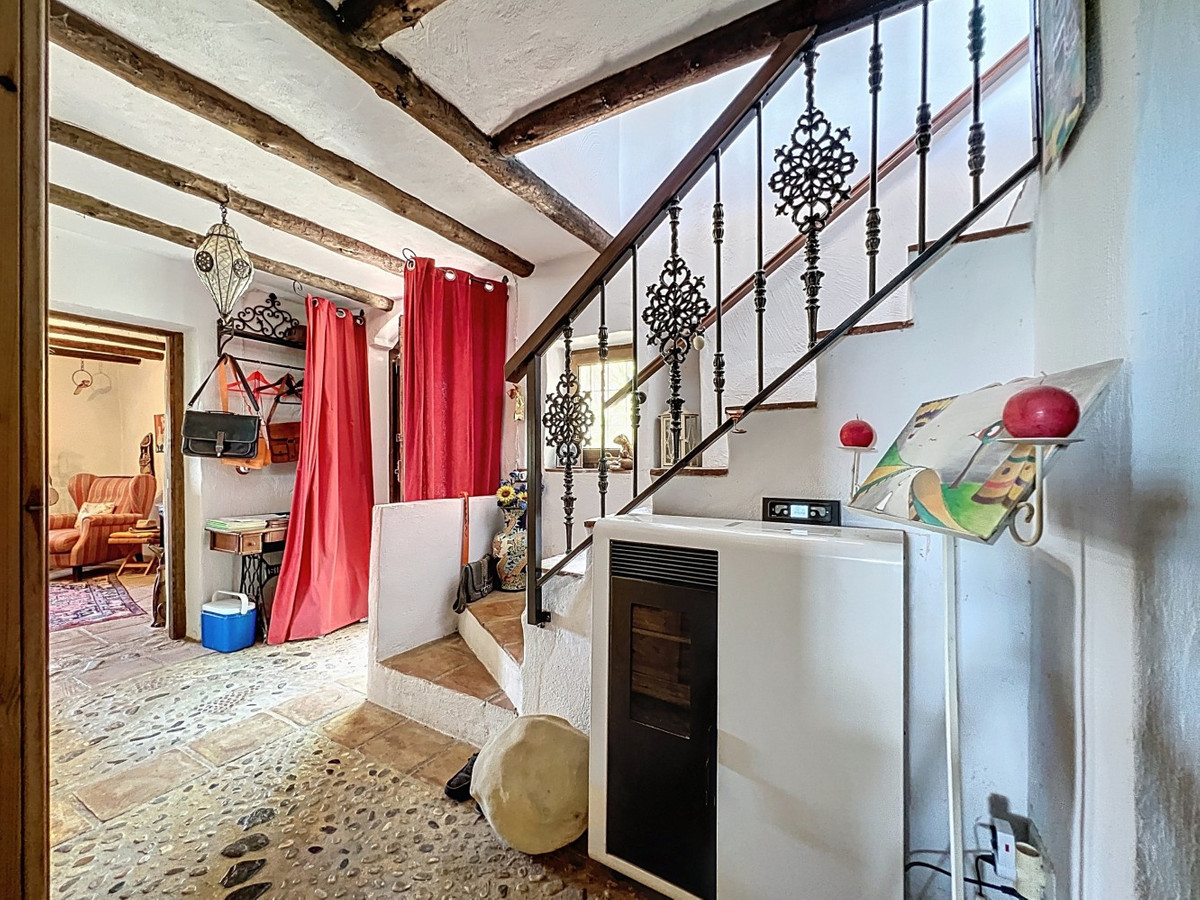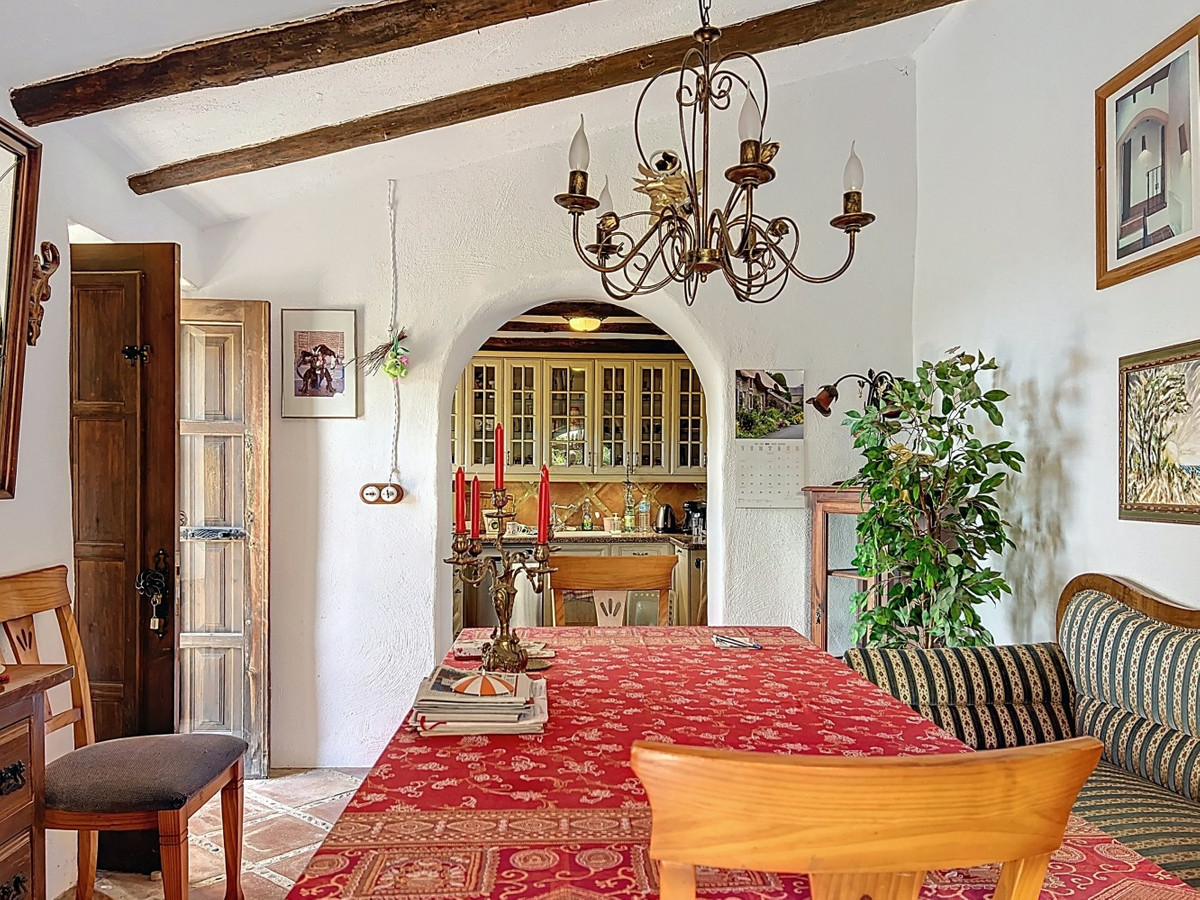 Cette charmante maison de campagne espagnole, située à Sayalonga/Árchez, dans la province de Malaga, allie le charme traditionnel au confort moderne, le tout dans un cadre idyllique avec une vue imprenable. La propriété offre une surface construite de 199 m² et 148 m² habitables répartis sur deux étages, avec trois chambres et deux salles de bains, idéale pour les familles ou les invités. À l'intérieur, le style rustique est omniprésent : les poutres apparentes sous les plafonds blanchis à la chaux confèrent chaleur et authenticité à chaque pièce. Les carreaux de terre cuite soulignent le style méditerranéen et créent une harmonie visuelle. Le système de chauffage, particulièrement bien pensé, est un atout majeur : un poêle à granulés moderne dans le couloir chauffe efficacement toute la maison. On trouve également un poêle à bois chaleureux dans le salon et un radiateur infrarouge pour un confort optimal lors des soirées plus fraîches. Les salles de bains sont également équipées de radiateurs infrarouges électriques pour une ambiance agréable et chaleureuse. Le salon et les chambres disposent de placards intégrés offrant un rangement pratique et s'intégrant parfaitement au style. Des meubles confortables aux tons rouges chauds, des miroirs décoratifs, des œuvres d'art colorées et des collections personnelles confèrent à l'espace une atmosphère bohème et décontractée. Une arche majestueuse relie l'intérieur à l'une des terrasses et offre une vue imprenable sur la campagne environnante. La cuisine, à la fois charmante et fonctionnelle, est équipée de placards couleur crème, d'un plan de travail en granit, d'appareils électroménagers modernes et d'une crédence en carrelage à motifs. Une hotte aspirante décorative complète l'ensemble. Les deux salles de bains, chacune avec son propre style, sont uniques : l'une dispose d'une baignoire et de carreaux rustiques artistiques, tandis que l'autre arbore un style moderne aux lignes épurées et aux équipements contemporains. Toutes deux s'harmonisent parfaitement avec le caractère de la maison. Les chambres reflètent le style andalou, avec leurs lits en fer forgé, leurs meubles en bois, leur éclairage chaleureux et les placards intégrés mentionnés précédemment, qui apportent confort et organisation. À l'extérieur, plusieurs terrasses offrent des vues spectaculaires sur la mer, les collines ondulantes et les villages blancs. L'une d'elles, couverte, offre un potentiel d'agrandissement idéal pour créer une ou deux pièces supplémentaires. L'espace extérieur comprend également une piscine privée, divers espaces de détente, une cuisine d'été et un jardin soigné, parfait pour des soirées conviviales ou des moments de calme en pleine nature. Cette villa allie une architecture intemporelle à des touches personnelles, des équipements bien pensés et des vues spectaculaires, offrant un véritable aperçu de l'art de vivre andalou. Nous sommes ravis de pouvoir vous présenter prochainement cette propriété de rêve, en personne ou par visite virtuelle. Car ce monde est unique, à l'image de notre Axarquía. En Andalousie. Sur la Costa del Sol. Ici, sous le soleil…
