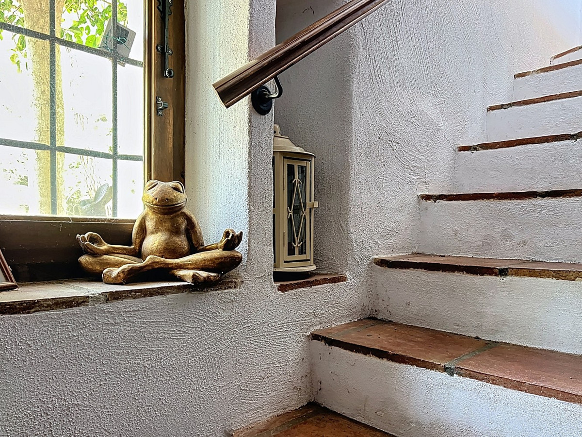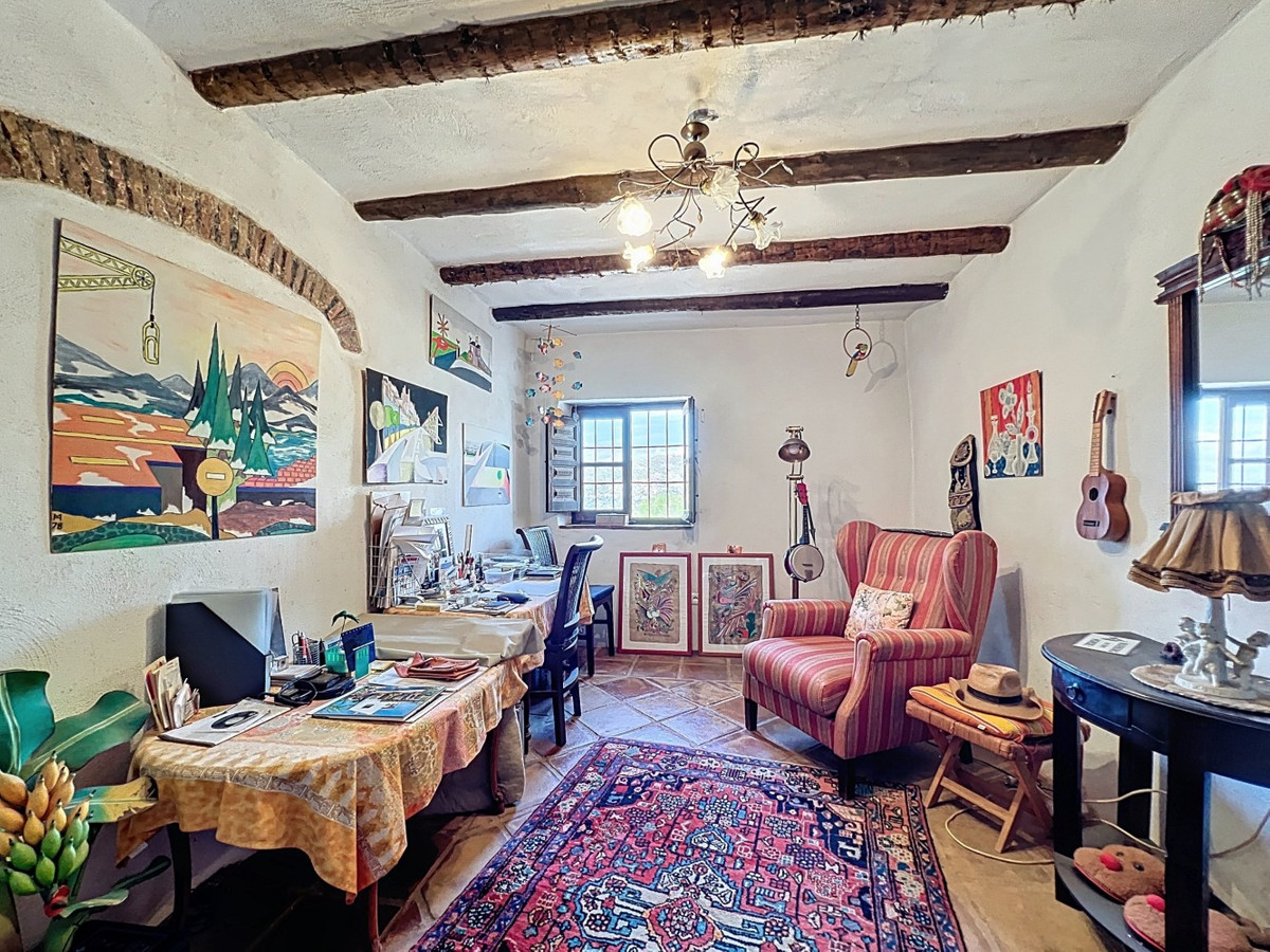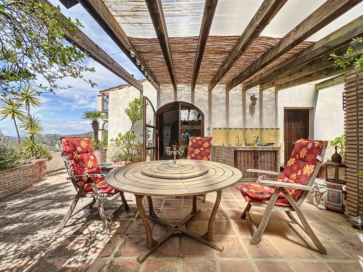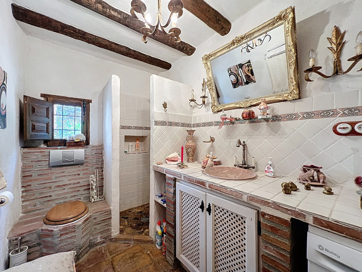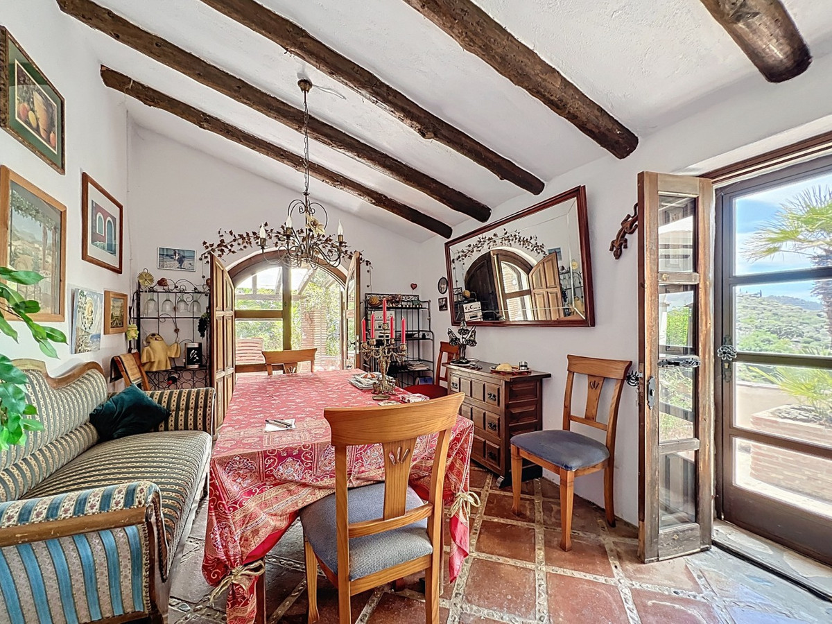 Cette charmante maison de campagne espagnole, située à Sayalonga/Árchez, dans la province de Malaga, allie le charme traditionnel au confort moderne, le tout dans un cadre idyllique avec une vue imprenable. La propriété offre une surface construite de 199 m² et 148 m² habitables répartis sur deux étages, avec trois chambres et deux salles de bains, idéale pour les familles ou les invités. À l'intérieur, le style rustique est omniprésent : les poutres apparentes sous les plafonds blanchis à la chaux confèrent chaleur et authenticité à chaque pièce. Les carreaux de terre cuite soulignent le style méditerranéen et créent une harmonie visuelle. Le système de chauffage, particulièrement bien pensé, est un atout majeur : un poêle à granulés moderne dans le couloir chauffe efficacement toute la maison. On trouve également un poêle à bois chaleureux dans le salon et un radiateur infrarouge pour un confort optimal lors des soirées plus fraîches. Les salles de bains sont également équipées de radiateurs infrarouges électriques pour une ambiance agréable et chaleureuse. Le salon et les chambres disposent de placards intégrés offrant un rangement pratique et s'intégrant parfaitement au style. Des meubles confortables aux tons rouges chauds, des miroirs décoratifs, des œuvres d'art colorées et des collections personnelles confèrent à l'espace une atmosphère bohème et décontractée. Une arche majestueuse relie l'intérieur à l'une des terrasses et offre une vue imprenable sur la campagne environnante. La cuisine, à la fois charmante et fonctionnelle, est équipée de placards couleur crème, d'un plan de travail en granit, d'appareils électroménagers modernes et d'une crédence en carrelage à motifs. Une hotte aspirante décorative complète l'ensemble. Les deux salles de bains, chacune avec son propre style, sont uniques : l'une dispose d'une baignoire et de carreaux rustiques artistiques, tandis que l'autre arbore un style moderne aux lignes épurées et aux équipements contemporains. Toutes deux s'harmonisent parfaitement avec le caractère de la maison. Les chambres reflètent le style andalou, avec leurs lits en fer forgé, leurs meubles en bois, leur éclairage chaleureux et les placards intégrés mentionnés précédemment, qui apportent confort et organisation. À l'extérieur, plusieurs terrasses offrent des vues spectaculaires sur la mer, les collines ondulantes et les villages blancs. L'une d'elles, couverte, offre un potentiel d'agrandissement idéal pour créer une ou deux pièces supplémentaires. L'espace extérieur comprend également une piscine privée, divers espaces de détente, une cuisine d'été et un jardin soigné, parfait pour des soirées conviviales ou des moments de calme en pleine nature. Cette villa allie une architecture intemporelle à des touches personnelles, des équipements bien pensés et des vues spectaculaires, offrant un véritable aperçu de l'art de vivre andalou. Nous sommes ravis de pouvoir vous présenter prochainement cette propriété de rêve, en personne ou par visite virtuelle. Car ce monde est unique, à l'image de notre Axarquía. En Andalousie. Sur la Costa del Sol. Ici, sous le soleil…