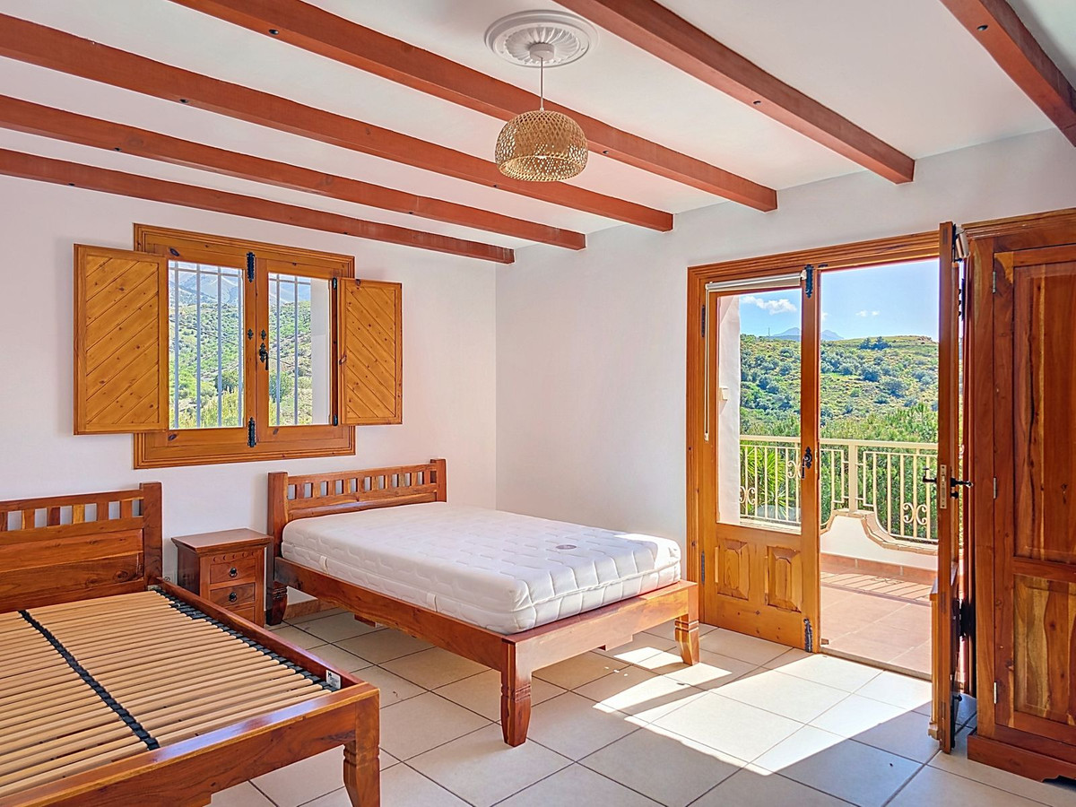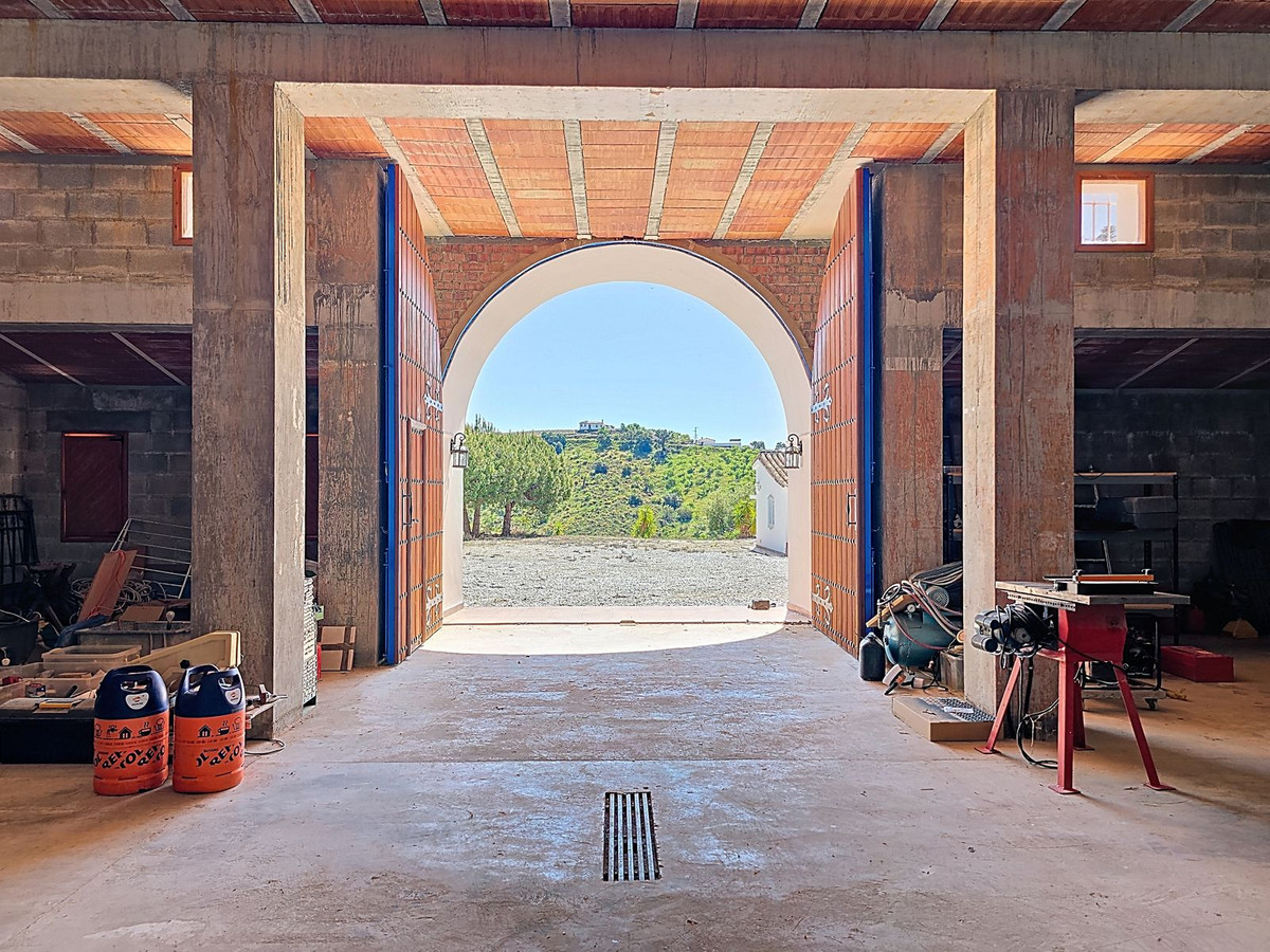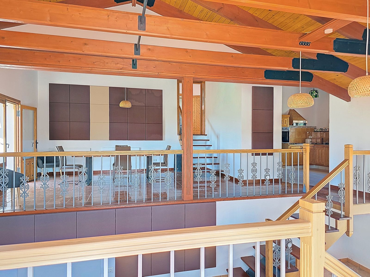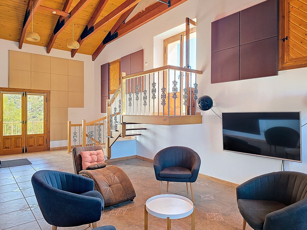 Sous la villa principale, un garage spacieux doté d'impressionnantes portes en bois réalisées sur mesure offre un vaste espace pour plusieurs véhicules ou peut facilement être transformé en atelier, salle de sport, studio d'artiste, voire en quatre chambres supplémentaires. Autour de la villa, près de 100 m² de terrasses et de solariums baignés de soleil offrent des vues panoramiques spectaculaires sur la Sierra de Almijara.
