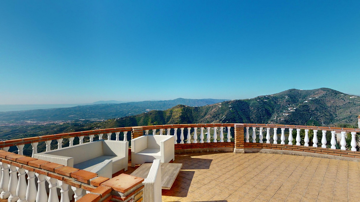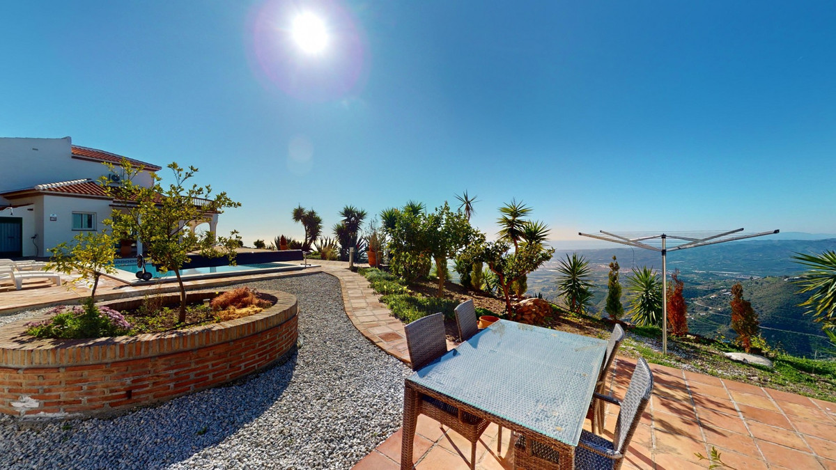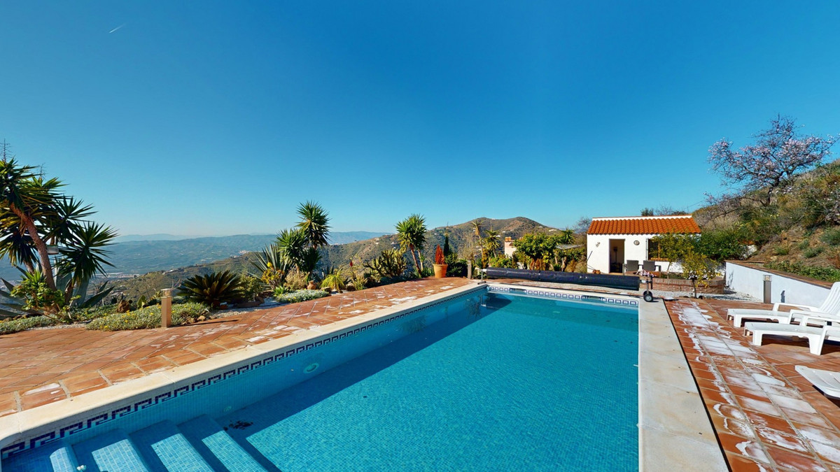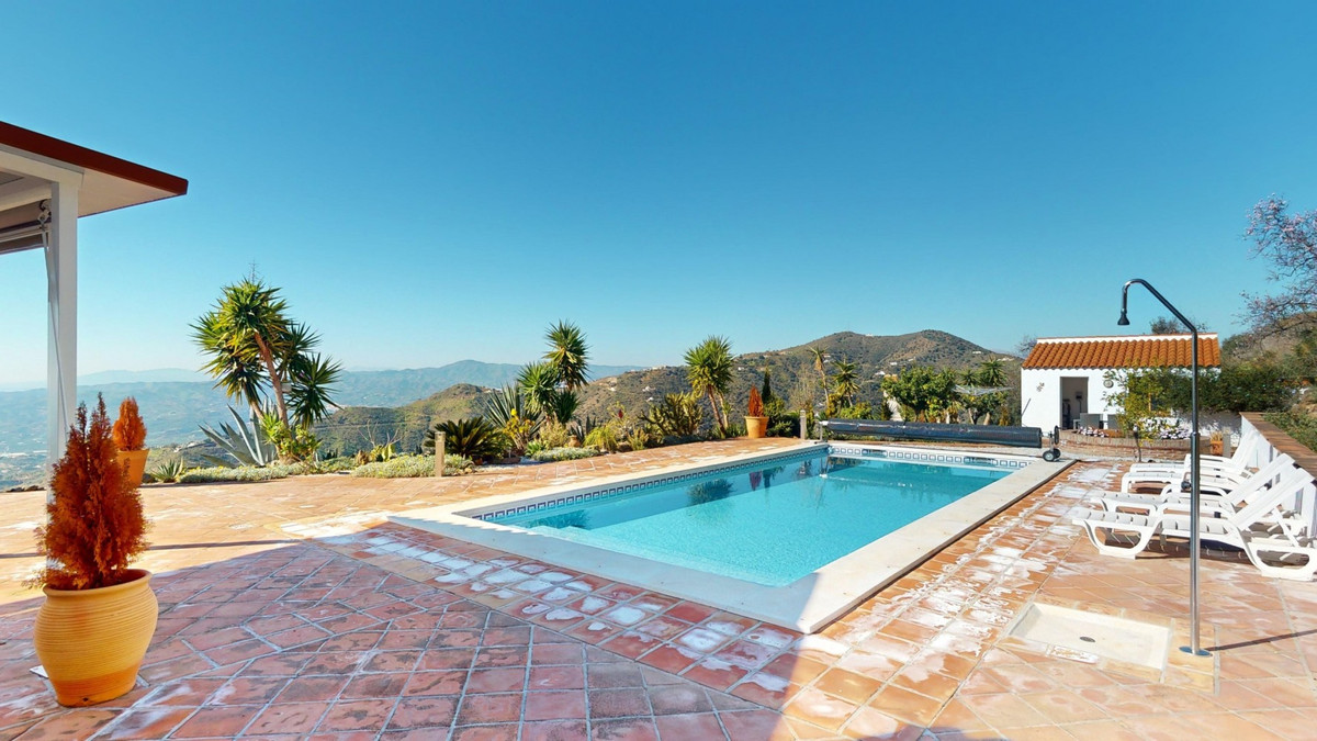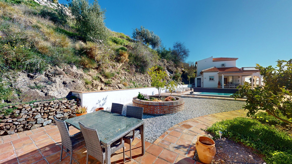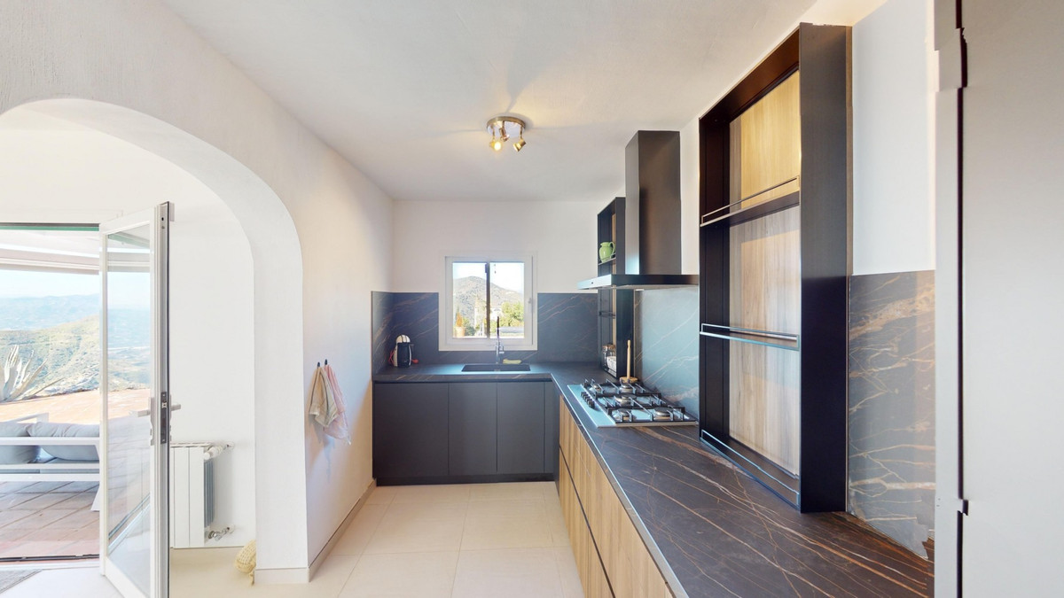 Cette villa récemment rénovée bénéficie d'un emplacement exceptionnel sur le mont Bentomiz à Arenas, à seulement 5 minutes du charmant village d'Arenas et ses maisons blanchies à la chaux, à 20 minutes des plages d'Algarrobo Costa et à 50 minutes de l'aéroport de Málaga. Elle offre un équilibre parfait entre tranquillité et accessibilité. La propriété se distingue par sa luminosité, son design moderne et ses finitions haut de gamme. Elle comprend un vaste séjour/salle à manger ouvert et une cuisine moderne entièrement équipée avec des appareils haut de gamme, dont une plaque de cuisson au gaz, un four, un lave-vaisselle et un réfrigérateur-congélateur intégré. La salle à manger s'ouvre sur une terrasse couverte, idéale pour se détendre ou prendre ses repas en plein air. La villa dispose de 3 chambres et 3 salles de bains, dont deux privatives. Au rez-de-chaussée, une chambre possède une salle de bains privative avec douche, WC et lavabo, ainsi que la climatisation. La deuxième chambre dispose d'une salle de bains séparée avec baignoire, douche, WC et lavabo. La suite parentale, située à l'étage, est climatisée et dispose d'une salle de bains privative avec douche, WC et lavabo, d'un dressing et d'un accès direct à une terrasse sur le toit offrant une vue panoramique imprenable et des couchers de soleil inoubliables. Toutes les chambres et le salon sont équipés de ventilateurs de plafond pour un confort optimal en été. L'espace extérieur comprend une piscine d'eau salée chauffée automatisée de 9,5 mètres sur 5 et un système d'arrosage automatique pour un jardin impeccable. La propriété bénéficie également d'un puits commun et d'une citerne d'une capacité de 12 000 litres. Plusieurs terrasses ombragées agrémentent l'espace extérieur, dont une peut être fermée par un store rétractable. La villa est dotée d'équipements de pointe, notamment 8 panneaux solaires avec un onduleur de 6 kW, le chauffage central, l'eau chaude sanitaire par chaudière à gaz, des fenêtres et portes à double vitrage avec système anti-effraction, un système de sécurité complet avec surveillance 24h/24 et 7j/7 et un système domotique contrôlant l'éclairage, la pompe à chaleur, les panneaux solaires et le niveau d'eau de la citerne. Cette propriété allie harmonieusement confort, style et durabilité dans un cadre exceptionnel. Contactez-nous dès aujourd'hui pour plus d'informations ou pour programmer une visite, en personne ou virtuelle.