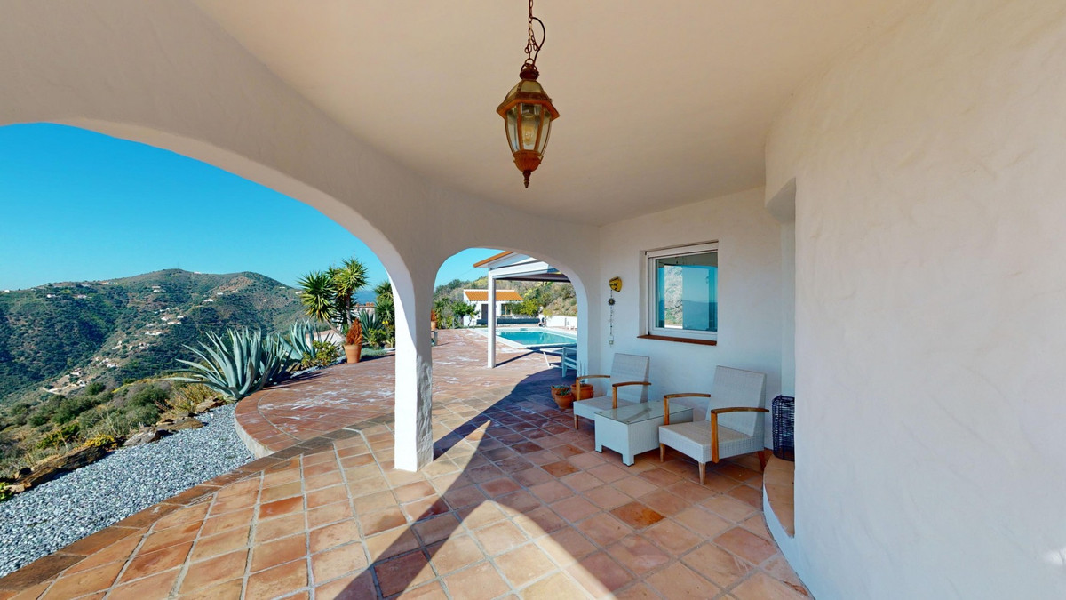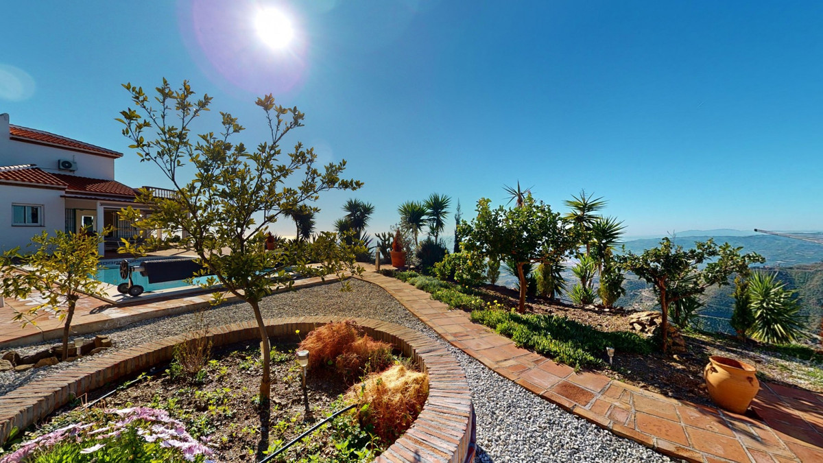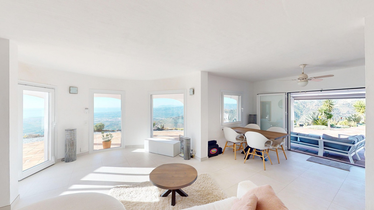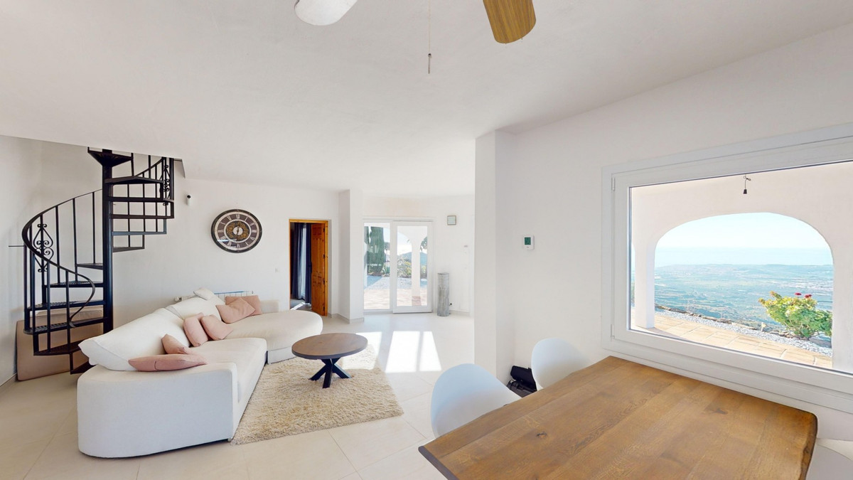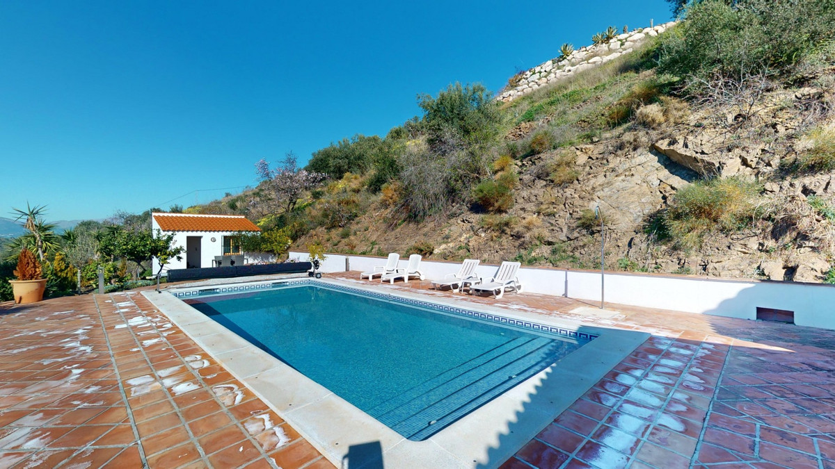 Cette villa récemment rénovée bénéficie d'un emplacement exceptionnel sur le mont Bentomiz à Arenas, à seulement 5 minutes du charmant village d'Arenas et ses maisons blanchies à la chaux, à 20 minutes des plages d'Algarrobo Costa et à 50 minutes de l'aéroport de Málaga. Elle offre un équilibre parfait entre tranquillité et accessibilité. La propriété se distingue par sa luminosité, son design moderne et ses finitions haut de gamme. Elle comprend un vaste séjour/salle à manger ouvert et une cuisine moderne entièrement équipée avec des appareils haut de gamme, dont une plaque de cuisson au gaz, un four, un lave-vaisselle et un réfrigérateur-congélateur intégré. La salle à manger s'ouvre sur une terrasse couverte, idéale pour se détendre ou prendre ses repas en plein air. La villa dispose de 3 chambres et 3 salles de bains, dont deux privatives. Au rez-de-chaussée, une chambre possède une salle de bains privative avec douche, WC et lavabo, ainsi que la climatisation. La deuxième chambre dispose d'une salle de bains séparée avec baignoire, douche, WC et lavabo. La suite parentale, située à l'étage, est climatisée et dispose d'une salle de bains privative avec douche, WC et lavabo, d'un dressing et d'un accès direct à une terrasse sur le toit offrant une vue panoramique imprenable et des couchers de soleil inoubliables. Toutes les chambres et le salon sont équipés de ventilateurs de plafond pour un confort optimal en été. L'espace extérieur comprend une piscine d'eau salée chauffée automatisée de 9,5 mètres sur 5 et un système d'arrosage automatique pour un jardin impeccable. La propriété bénéficie également d'un puits commun et d'une citerne d'une capacité de 12 000 litres. Plusieurs terrasses ombragées agrémentent l'espace extérieur, dont une peut être fermée par un store rétractable. La villa est dotée d'équipements de pointe, notamment 8 panneaux solaires avec un onduleur de 6 kW, le chauffage central, l'eau chaude sanitaire par chaudière à gaz, des fenêtres et portes à double vitrage avec système anti-effraction, un système de sécurité complet avec surveillance 24h/24 et 7j/7 et un système domotique contrôlant l'éclairage, la pompe à chaleur, les panneaux solaires et le niveau d'eau de la citerne. Cette propriété allie harmonieusement confort, style et durabilité dans un cadre exceptionnel. Contactez-nous dès aujourd'hui pour plus d'informations ou pour programmer une visite, en personne ou virtuelle.