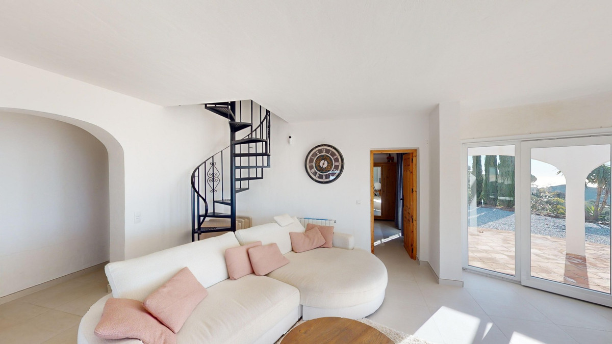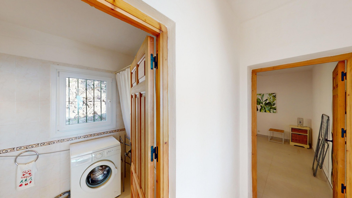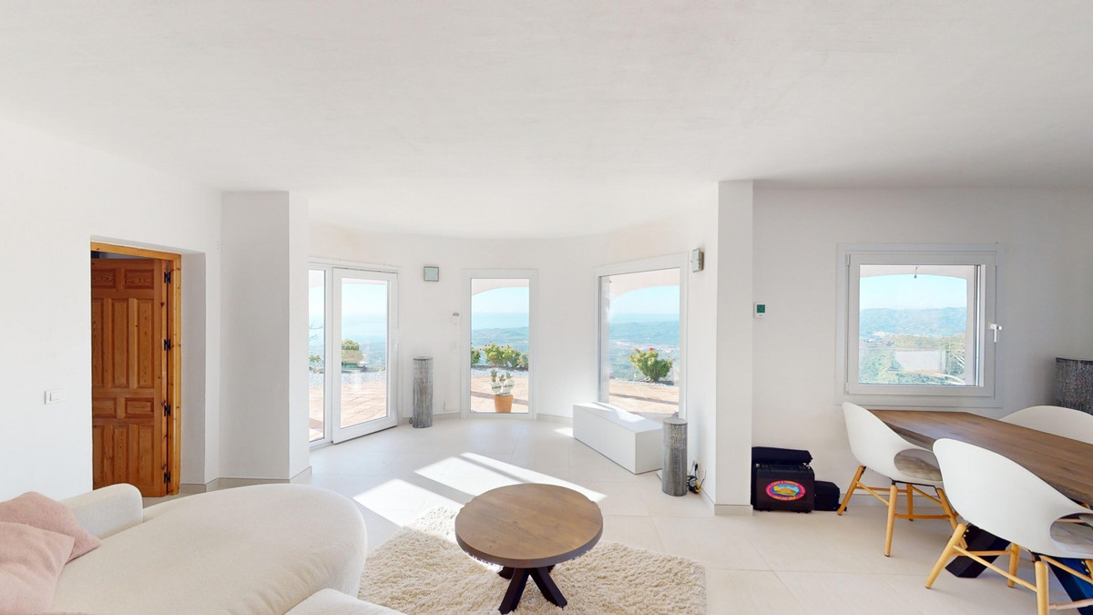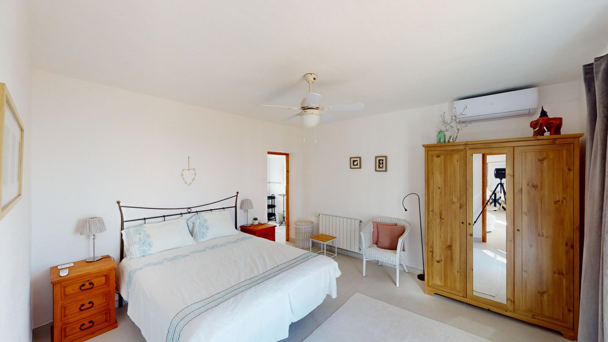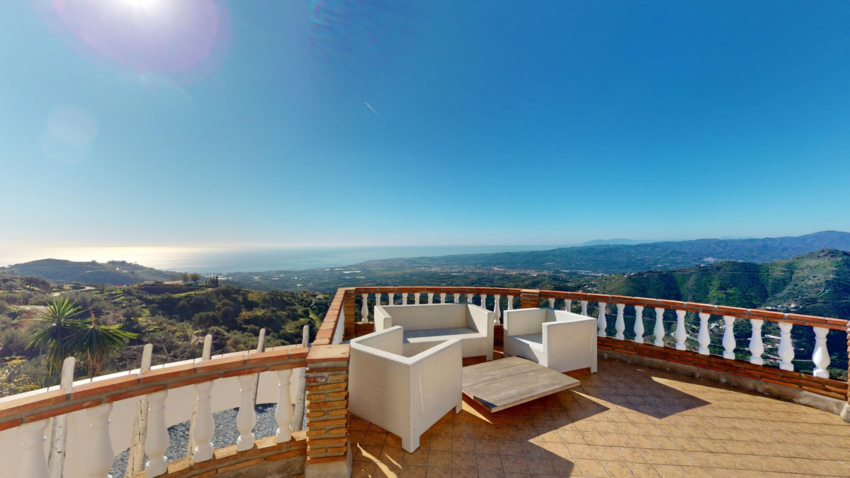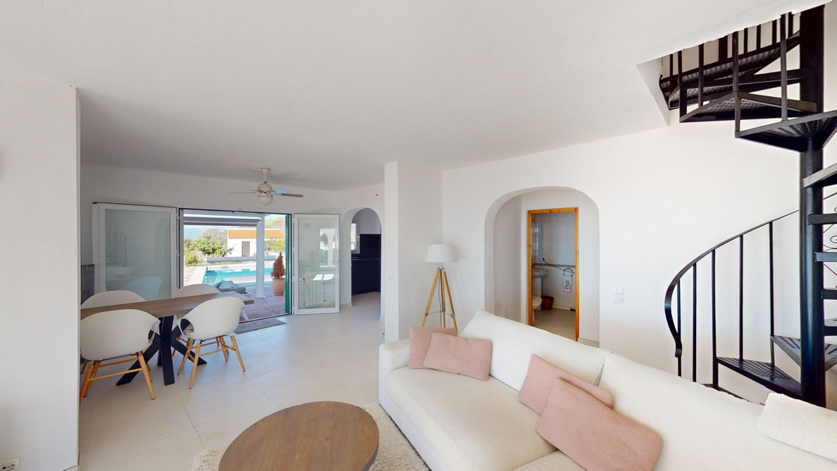 Cette villa récemment rénovée bénéficie d'un emplacement exceptionnel sur le mont Bentomiz à Arenas, à seulement 5 minutes du charmant village d'Arenas et ses maisons blanchies à la chaux, à 20 minutes des plages d'Algarrobo Costa et à 50 minutes de l'aéroport de Málaga. Elle offre un équilibre parfait entre tranquillité et accessibilité. La propriété se distingue par sa luminosité, son design moderne et ses finitions haut de gamme. Elle comprend un vaste séjour/salle à manger ouvert et une cuisine moderne entièrement équipée avec des appareils haut de gamme, dont une plaque de cuisson au gaz, un four, un lave-vaisselle et un réfrigérateur-congélateur intégré. La salle à manger s'ouvre sur une terrasse couverte, idéale pour se détendre ou prendre ses repas en plein air. La villa dispose de 3 chambres et 3 salles de bains, dont deux privatives. Au rez-de-chaussée, une chambre possède une salle de bains privative avec douche, WC et lavabo, ainsi que la climatisation. La deuxième chambre dispose d'une salle de bains séparée avec baignoire, douche, WC et lavabo. La suite parentale, située à l'étage, est climatisée et dispose d'une salle de bains privative avec douche, WC et lavabo, d'un dressing et d'un accès direct à une terrasse sur le toit offrant une vue panoramique imprenable et des couchers de soleil inoubliables. Toutes les chambres et le salon sont équipés de ventilateurs de plafond pour un confort optimal en été. L'espace extérieur comprend une piscine d'eau salée chauffée automatisée de 9,5 mètres sur 5 et un système d'arrosage automatique pour un jardin impeccable. La propriété bénéficie également d'un puits commun et d'une citerne d'une capacité de 12 000 litres. Plusieurs terrasses ombragées agrémentent l'espace extérieur, dont une peut être fermée par un store rétractable. La villa est dotée d'équipements de pointe, notamment 8 panneaux solaires avec un onduleur de 6 kW, le chauffage central, l'eau chaude sanitaire par chaudière à gaz, des fenêtres et portes à double vitrage avec système anti-effraction, un système de sécurité complet avec surveillance 24h/24 et 7j/7 et un système domotique contrôlant l'éclairage, la pompe à chaleur, les panneaux solaires et le niveau d'eau de la citerne. Cette propriété allie harmonieusement confort, style et durabilité dans un cadre exceptionnel. Contactez-nous dès aujourd'hui pour plus d'informations ou pour programmer une visite, en personne ou virtuelle.