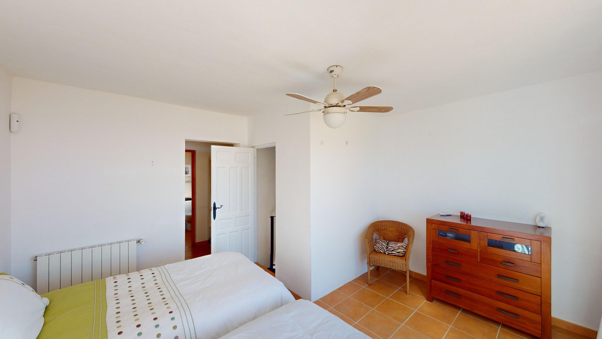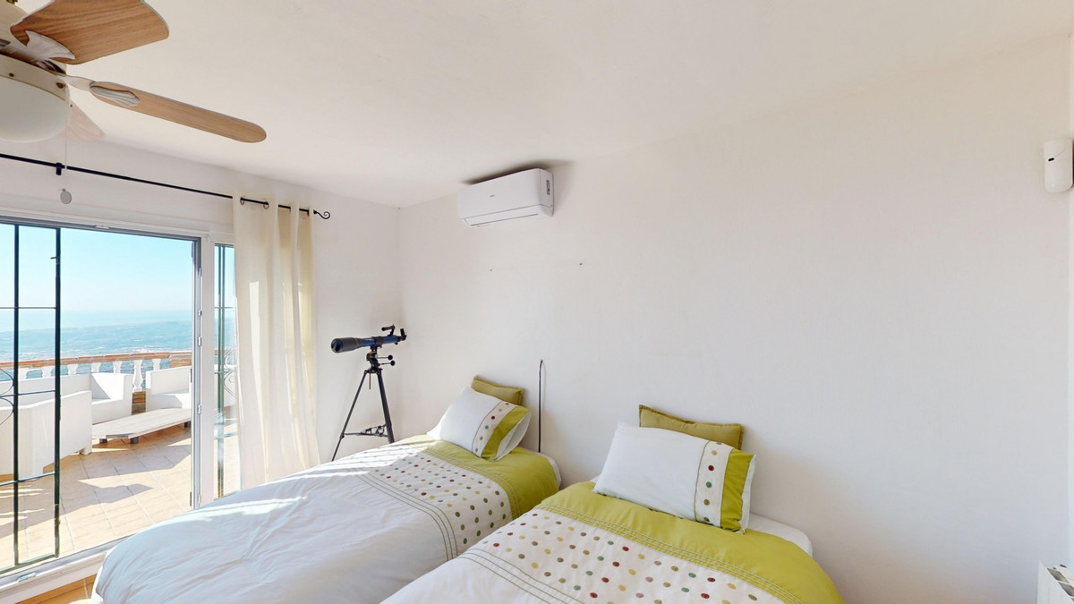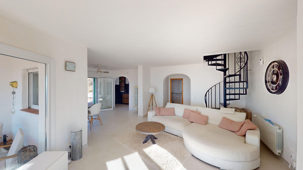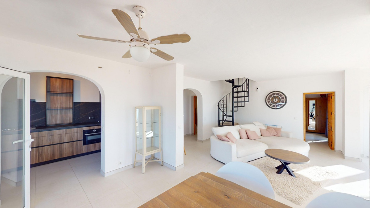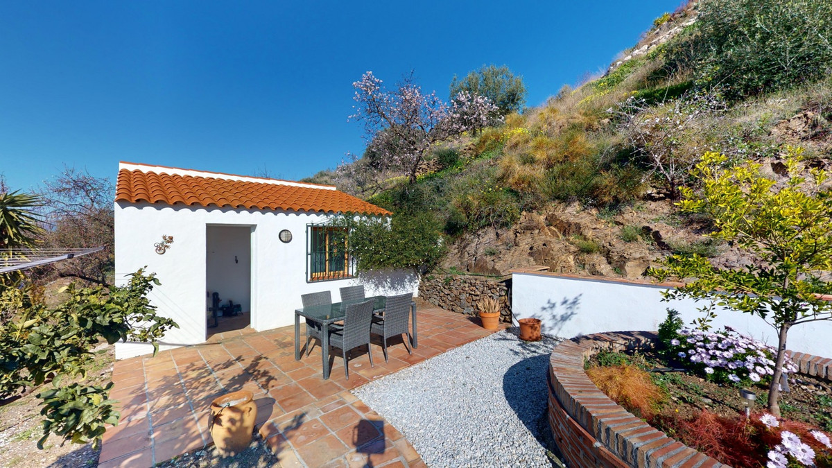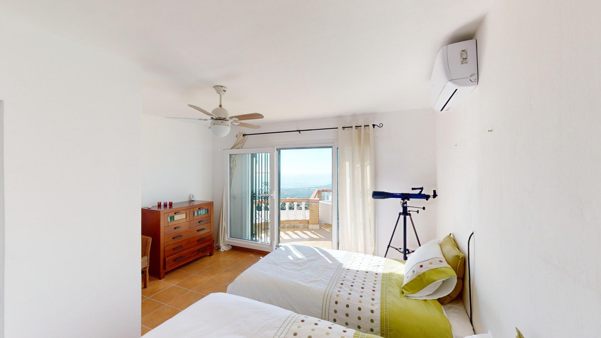 Cette villa récemment rénovée bénéficie d'un emplacement exceptionnel sur le mont Bentomiz à Arenas, à seulement 5 minutes du charmant village d'Arenas et ses maisons blanchies à la chaux, à 20 minutes des plages d'Algarrobo Costa et à 50 minutes de l'aéroport de Málaga. Elle offre un équilibre parfait entre tranquillité et accessibilité. La propriété se distingue par sa luminosité, son design moderne et ses finitions haut de gamme. Elle comprend un vaste séjour/salle à manger ouvert et une cuisine moderne entièrement équipée avec des appareils haut de gamme, dont une plaque de cuisson au gaz, un four, un lave-vaisselle et un réfrigérateur-congélateur intégré. La salle à manger s'ouvre sur une terrasse couverte, idéale pour se détendre ou prendre ses repas en plein air. La villa dispose de 3 chambres et 3 salles de bains, dont deux privatives. Au rez-de-chaussée, une chambre possède une salle de bains privative avec douche, WC et lavabo, ainsi que la climatisation. La deuxième chambre dispose d'une salle de bains séparée avec baignoire, douche, WC et lavabo. La suite parentale, située à l'étage, est climatisée et dispose d'une salle de bains privative avec douche, WC et lavabo, d'un dressing et d'un accès direct à une terrasse sur le toit offrant une vue panoramique imprenable et des couchers de soleil inoubliables. Toutes les chambres et le salon sont équipés de ventilateurs de plafond pour un confort optimal en été. L'espace extérieur comprend une piscine d'eau salée chauffée automatisée de 9,5 mètres sur 5 et un système d'arrosage automatique pour un jardin impeccable. La propriété bénéficie également d'un puits commun et d'une citerne d'une capacité de 12 000 litres. Plusieurs terrasses ombragées agrémentent l'espace extérieur, dont une peut être fermée par un store rétractable. La villa est dotée d'équipements de pointe, notamment 8 panneaux solaires avec un onduleur de 6 kW, le chauffage central, l'eau chaude sanitaire par chaudière à gaz, des fenêtres et portes à double vitrage avec système anti-effraction, un système de sécurité complet avec surveillance 24h/24 et 7j/7 et un système domotique contrôlant l'éclairage, la pompe à chaleur, les panneaux solaires et le niveau d'eau de la citerne. Cette propriété allie harmonieusement confort, style et durabilité dans un cadre exceptionnel. Contactez-nous dès aujourd'hui pour plus d'informations ou pour programmer une visite, en personne ou virtuelle.