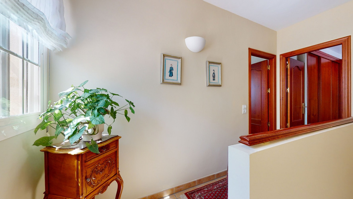 Une vue imprenable, une orientation sud-ouest idéale : la promesse d'un bonheur absolu. Cette villa d'exception, construite avec des matériaux de très haute qualité, offre un cadre idyllique avec un magnifique jardin comprenant spa, sauna et piscine, ainsi qu'une luxueuse cuisine d'été avec coin repas intégré. Située entre Algarrobo et Sayalonga, cette villa unique vous propose tout cela et bien plus encore. Son emplacement privilégié garantit une intimité totale et vous offre une vue romantique sur le coucher du soleil, se reflétant tantôt sur la Méditerranée, tantôt, selon la saison, sur le fabuleux paysage montagneux de Malaga. Un chemin privé asphalté, bordé de pins, mène à l'imposante entrée de la propriété, où un îlot de palmiers se dresse au milieu d'un rondin. Plusieurs places de parking, un garage et un grand abri voiture complètent le rez-de-chaussée. Au premier étage se trouvent le salon avec une cheminée séparée, des toilettes invités, une buanderie, une cuisine moderne donnant sur une véranda spacieuse et parfaitement équipée, ainsi qu'une très belle chambre avec salle de bains privative. À l'étage de la villa se trouve la suite parentale avec une spacieuse salle de bains privative et un dressing. La propriété est équipée du chauffage central, de la climatisation et d'une cheminée. Le terrain est agrémenté d'une variété d'arbres fruitiers, de palmiers, de plantes tropicales et de pins. La plage et la mer, ainsi que le golf et le port de plaisance de Caleta, sont à 15 minutes, et l'aéroport de Malaga à seulement 40 minutes. Nous serions ravis de vous présenter prochainement cette propriété de rêve, en personne ou par visite virtuelle. Car ce monde est unique, à l'image de notre Axarquía. En Andalousie. Sur la Costa del Sol. Ici, sous le soleil…