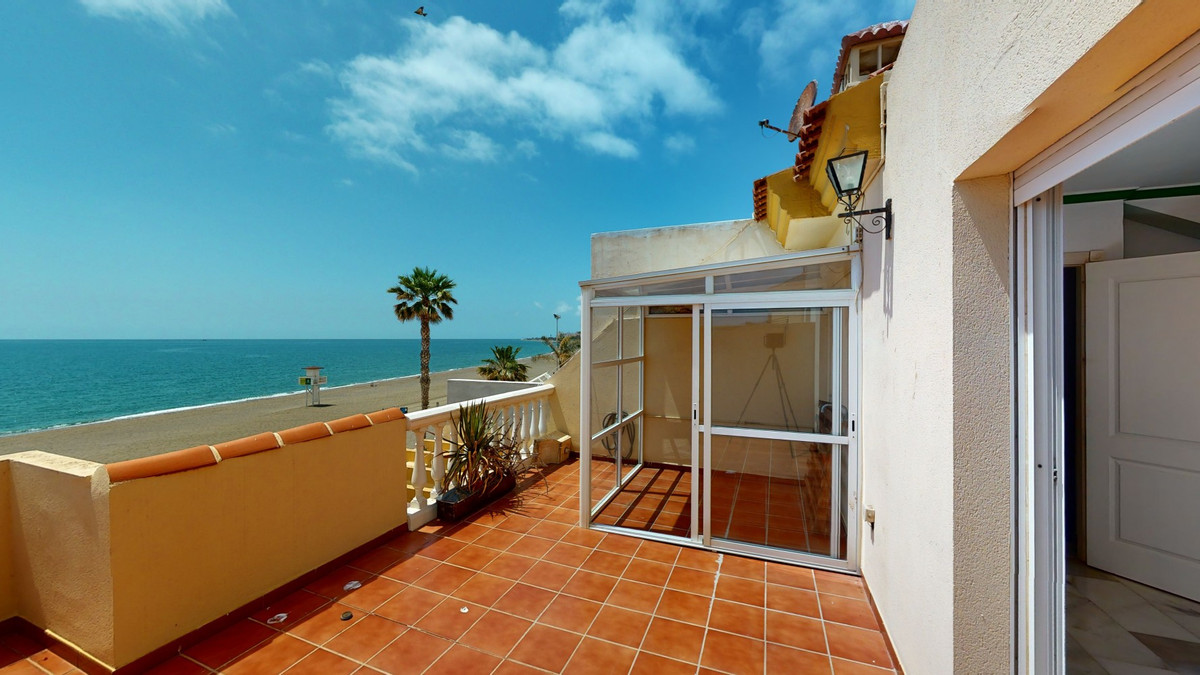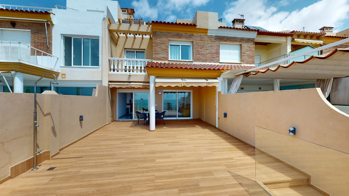 Cette magnifique maison de ville en bord de mer offre une vue spectaculaire sur la plage et la promenade. Elle comprend un séjour, une cuisine, quatre chambres, deux salles de bains, des toilettes, trois terrasses, un balcon, un garage double et un cellier. La maison est répartie sur trois étages et un sous-sol où se trouve le garage. L'entrée se situe au rez-de-chaussée, où un couloir dessert la cuisine, les toilettes et le séjour qui s'ouvre sur une grande terrasse. Cette même terrasse donne accès à la promenade et à la plage. Le premier étage comprend trois chambres et deux salles de bains. Deux des chambres offrent une vue imprenable sur la mer. La suite parentale dispose d'un dressing, d'une terrasse et d'une salle de bains privative. La troisième salle de bains est partagée par les deux autres chambres. Au deuxième étage se trouve une pièce avec deux grandes terrasses, l'une orientée vers la montagne et l'autre vers la mer, offrant un panorama exceptionnel. Au sous-sol se trouve un grand garage double et un espace de rangement conséquent. Un grand cellier est situé juste en face du garage. Cette propriété est idéale si vous rêvez de vivre face à la mer. Le bruit et la sérénité des vagues sont incomparables. Nous sommes ravis de pouvoir vous présenter prochainement ce bien d'exception, en personne ou en visite virtuelle. Car ce lieu est unique, à l'image de notre Axarquía. En Andalousie. Sur la Costa del Sol. Ici, sous le soleil…