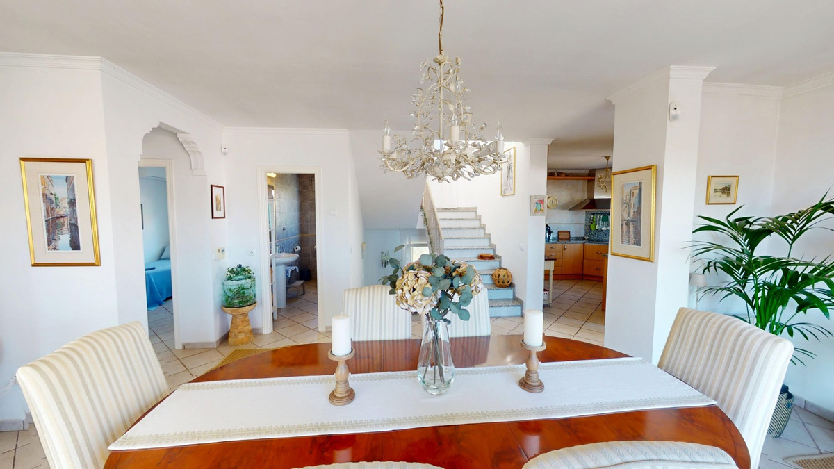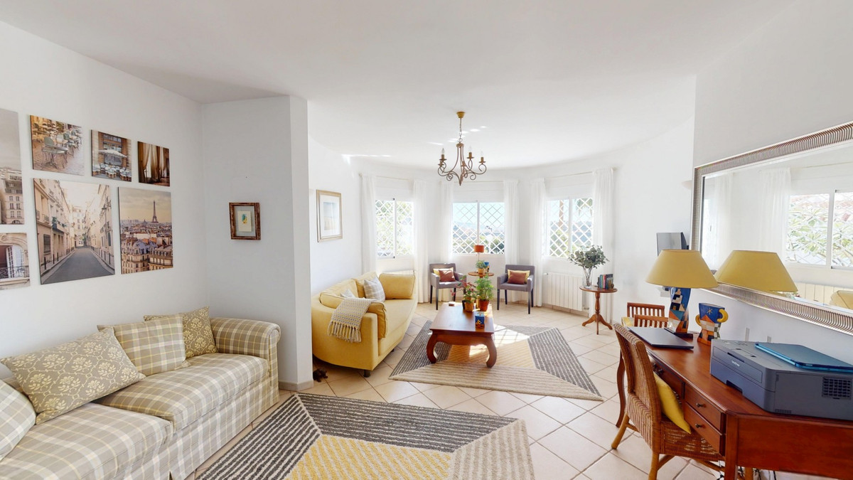 Découvrez un monde où luxe et tranquillité se conjuguent dans cette magnifique villa individuelle, située dans le quartier résidentiel paisible d'El Capitán, près de Torre del Mar et d'Almayate, sur la côte est de Malaga. Son emplacement est idéal pour ceux qui recherchent calme et intimité tout en restant proches des commodités. En quelques minutes seulement, vous rejoindrez les plages d'Almayate et de Torre del Mar, où vous trouverez de charmants restaurants, des boutiques et des promenades animées en bord de mer. La ville de Malaga et l'aéroport sont à seulement 35 minutes en voiture. Nichée sur un terrain privé de 811 m², la villa offre 310 m² d'espace de vie élégant, entouré d'un jardin facile d'entretien, clos d'un mur pour une intimité et une sécurité optimales. Un portail privé permet l'accès aux véhicules, et l'espace extérieur comprend une piscine étincelante, une vaste terrasse couverte pour se détendre à l'ombre, et un charmant coin salon sous une coupole, parfait pour savourer un verre ou un bon livre. À l'intérieur, la maison impressionne par ses espaces généreux et sa luminosité naturelle. Le hall d'entrée mène à un garage double avec espace de rangement supplémentaire. Au rez-de-chaussée, vous trouverez un vaste séjour avec un coin salon attenant et de larges baies vitrées s'ouvrant sur la piscine et le jardin, ainsi qu'une salle de bains et une chambre idéale pour les invités. À l'étage, le cœur de la maison se dévoile : un espace lumineux et décloisonné réunissant la cuisine, la salle à manger et le séjour. La lumière naturelle inonde la pièce à travers de grandes fenêtres, créant une atmosphère chaleureuse et accueillante, propice à la détente en famille comme aux réceptions élégantes. La cuisine entièrement équipée dispose d'élégants placards en bois, d'un plan de travail en granit et offre une vue sur le jardin. Depuis le séjour, vous accédez à un grand balcon offrant une vue imprenable sur la mer Méditerranée. Cet étage comprend également deux chambres, une salle de bains spacieuse et des toilettes séparées. Une terrasse donnant sur la rue est accessible depuis ce niveau ou par un escalier extérieur, offrant un espace extérieur supplémentaire pour se réunir ou profiter de soirées paisibles. Au dernier étage, une terrasse sur le toit couronne la villa, offrant une vue panoramique sur la mer, les montagnes et la campagne environnante – un lieu idéal pour admirer les couchers de soleil et la sérénité des soirées andalouses. Cette villa allie élégance, confort et charme méditerranéen : un véritable havre de paix où chaque jour est une invitation au voyage. Nous serions ravis de vous présenter prochainement cette propriété de rêve, que ce soit en personne ou par le biais d’une visite virtuelle. Car ce monde est unique, à l’image de notre Axarquía. En Andalousie. Sur la Costa del Sol. Ici, la vie est douce et ensoleillée.