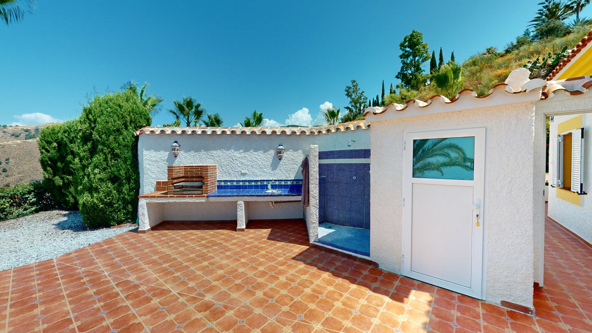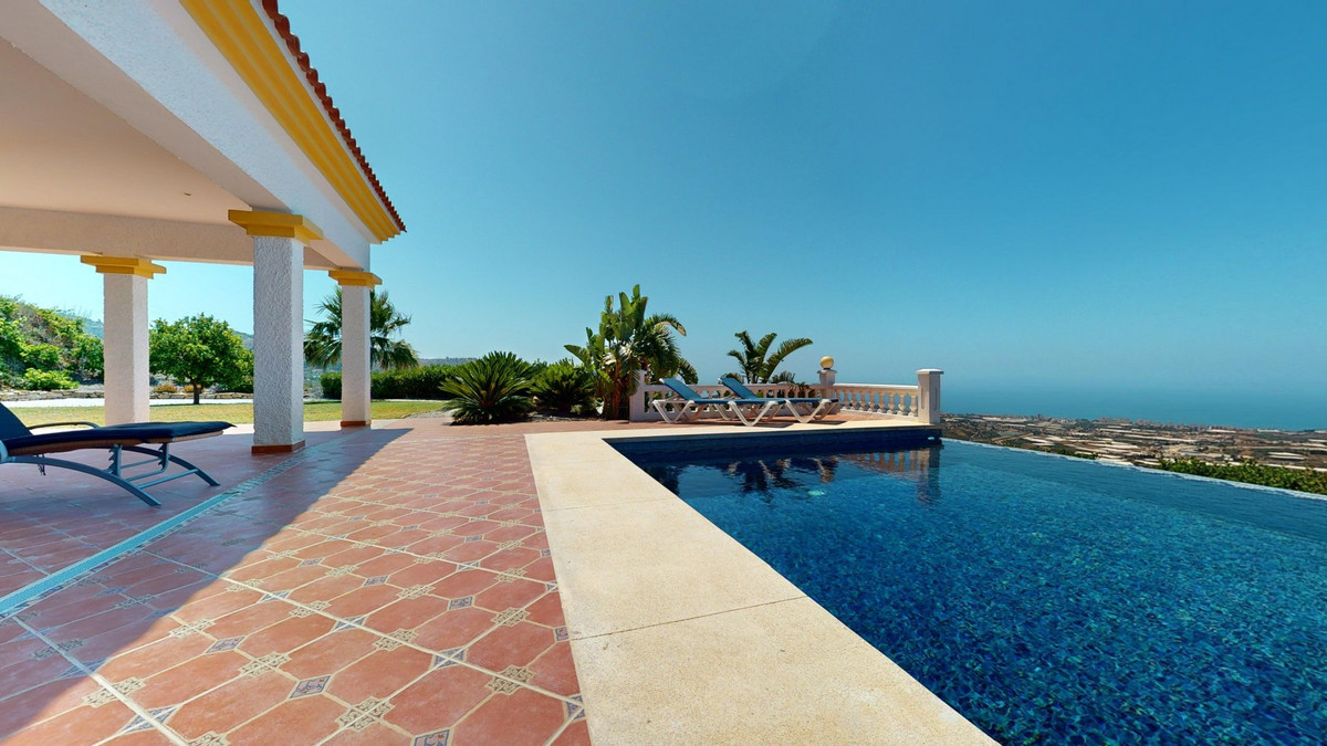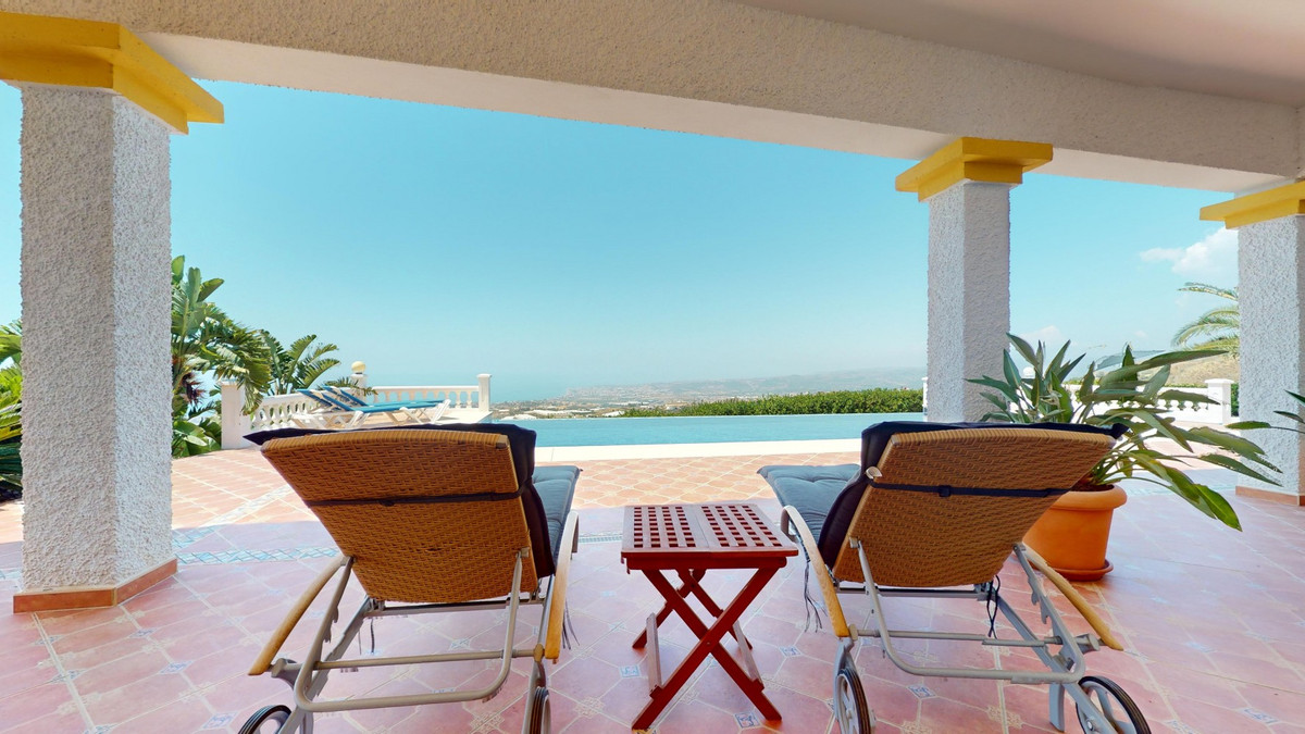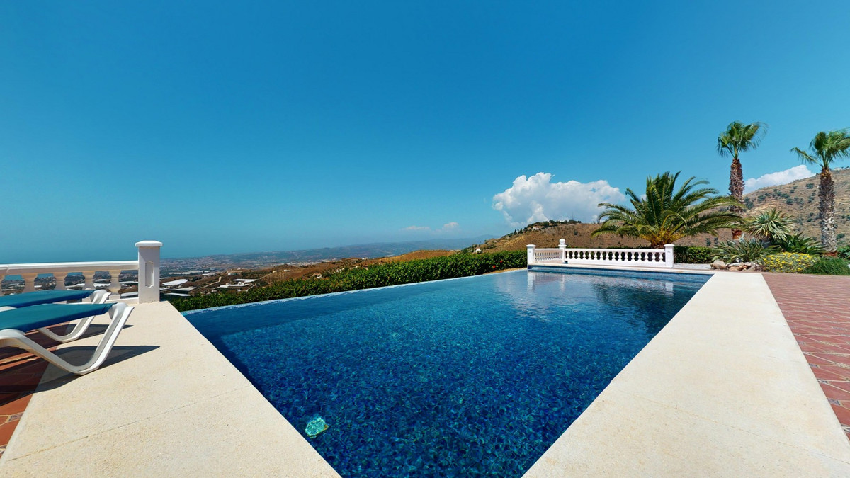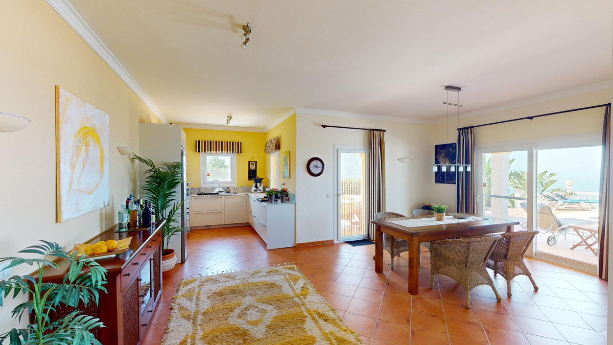 À vendre : une villa à couper le souffle située dans le cadre pittoresque d'Algarrobo, répondant à toutes vos envies et attentes d'une demeure de luxe. Cette propriété exceptionnelle impressionne non seulement par ses vues imprenables sur la mer, mais aussi par sa piscine à débordement qui se fond harmonieusement dans l'horizon, vous donnant l'impression de ne faire qu'un avec l'océan. La villa dispose de trois chambres spacieuses, chacune élégamment meublée et équipée d'une salle de bains privative, garantissant un confort et une intimité optimaux. Le séjour/salle à manger ouvert, avec sa cuisine moderne entièrement équipée, offre un espace généreux pour des soirées conviviales en famille ou entre amis. De larges baies vitrées laissent entrer une abondante lumière naturelle et offrent une vue imprenable sur la mer scintillante. Le chauffage au sol assure une atmosphère chaleureuse et confortable tout au long de l'année. De là, vous accédez à la terrasse couverte, véritable espace de vie extérieur supplémentaire. C'est l'endroit idéal pour admirer les couchers de soleil spectaculaires et les vues panoramiques sur le littoral. Le jardin soigné invite à la détente et offre un vaste espace pour vos loisirs. Une buanderie séparée avec de nombreux rangements ajoute au confort et à la praticité de cette villa. Plusieurs places de parking sont à votre disposition, vous assurant un séjour confortable et sécurisé. La villa bénéficie d'un emplacement paisible et idyllique, tout en offrant un accès facile aux commodités environnantes. Ici, vous profiterez d'une intimité et d'une détente absolues dans l'une des plus belles régions de la Costa del Sol. Cette propriété se distingue par la qualité exceptionnelle de sa construction et ses prestations exclusives. C'est le choix idéal pour ceux qui recherchent un bien d'exception et apprécient un style de vie luxueux dans un cadre unique. Laissez-vous charmer par cette villa de rêve et découvrez le meilleur de la vie ! Nous serons ravis de vous présenter prochainement cette propriété de rêve, en personne ou par visite virtuelle. Car ce monde est unique, à l'image de notre Axarquía. En Andalousie. Sur la Costa del Sol. Ici, sous le soleil…