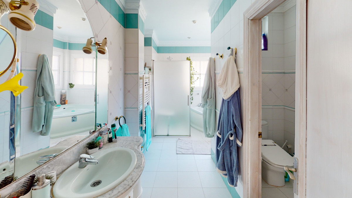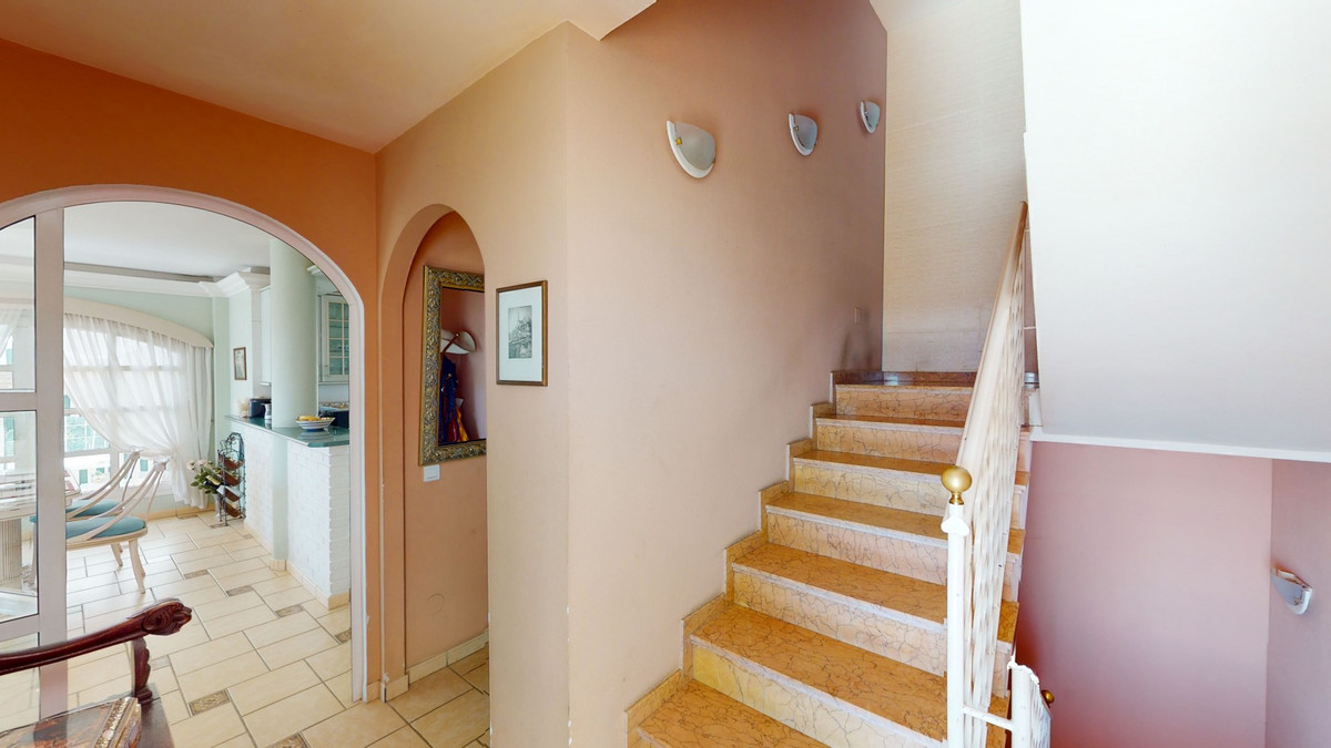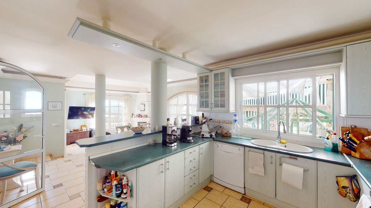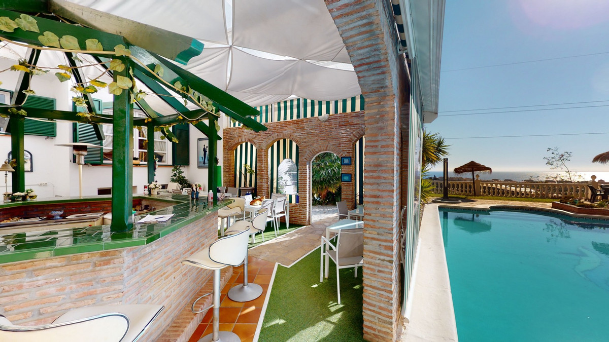 Vous avez toujours rêvé d'une grande et élégante demeure pouvant accueillir toute la famille ? Nous avons la propriété idéale pour vous. Cette villa d'environ 500 m² est divisée en deux maisons jumelées. Chaque logement dispose de sa propre entrée et de cinq niveaux. De plus, chaque partie de la maison comprend une dépendance pour les invités. Parfaite pour une famille nombreuse, un investissement locatif ou un club de tennis, les possibilités sont nombreuses. Un sous-sol spacieux et commun, avec buanderie, rangements et accès à l'extérieur, relie les deux parties de la villa. Des escaliers séparés mènent au rez-de-chaussée. De part et d'autre, on trouve l'entrée principale, des toilettes invités et un vaste séjour-salle à manger avec cuisine ouverte et une vue imprenable sur la côte. Le premier étage comprend une pièce pouvant servir de bureau et la suite parentale avec salle de bains privative, dressing et petite terrasse. Au deuxième étage, les duplex s'ouvrent sur une cuisine commune avec accès à l'étage supérieur. Un large escalier commun mène au dernier étage de la propriété, où se trouvent deux chambres avec salles de bains privatives. Les deux annexes indépendantes, situées au rez-de-chaussée, comprennent un espace de vie ouvert avec chambre, kitchenette et salle de bains. Le point fort de la propriété est sans conteste son espace extérieur. Juste à côté de la villa se trouve un bar couvert avec des sièges, idéal pour les réceptions été comme hiver. Pour se rafraîchir lors des chaudes journées d'été, plongez dans la piscine accueillante ou détendez-vous sur un transat face à la mer. Derrière une clôture recouverte de lierre, un court de sable ravira les amateurs de tennis. Au-dessus du court se trouve un bâtiment abritant un sauna, des douches et des toilettes. La propriété dispose de deux grands parkings. L'un, au niveau supérieur, donne accès à la cuisine commune et au sauna. L'autre, avec un abri voiture, se situe au niveau inférieur, où se trouvent les entrées principales des maisons jumelées, ainsi que la piscine et le court de tennis. La propriété est autonome grâce à son propre système d'approvisionnement en eau et d'assainissement. Un puits de 15 000 litres alimente le complexe et le court de tennis. Nous sommes ravis de pouvoir vous présenter prochainement cette propriété de rêve, en personne ou en visite virtuelle. Car ce lieu est unique, à l’image de notre Axarquía. En Andalousie. Sur la Costa del Sol. Ici, sous le soleil…