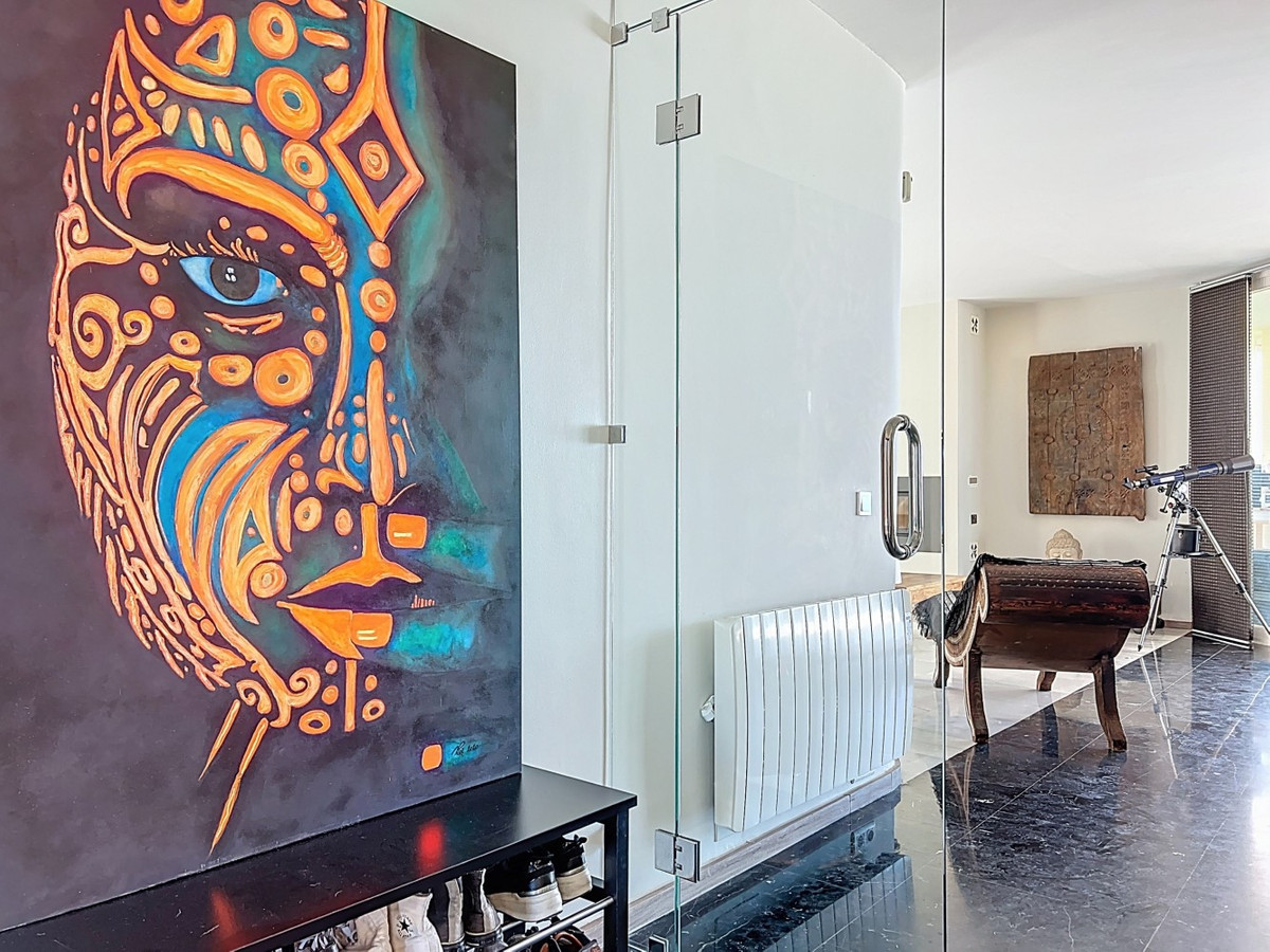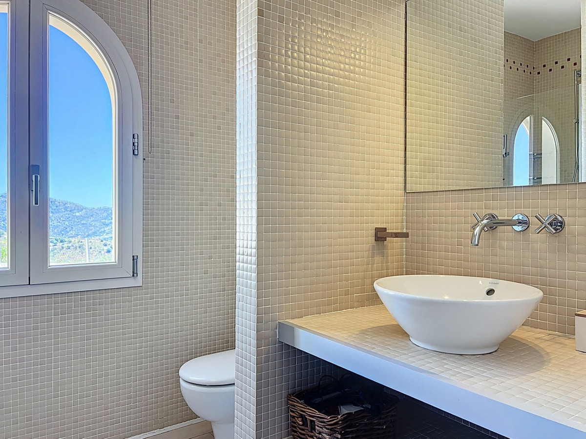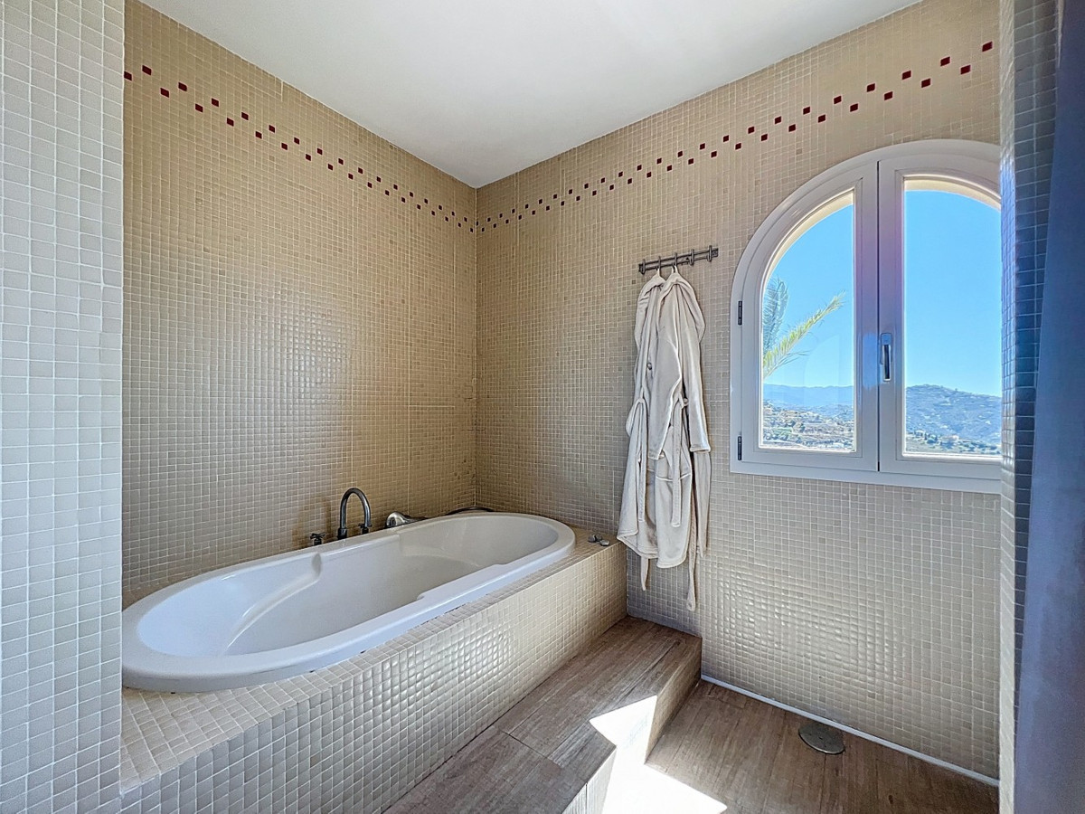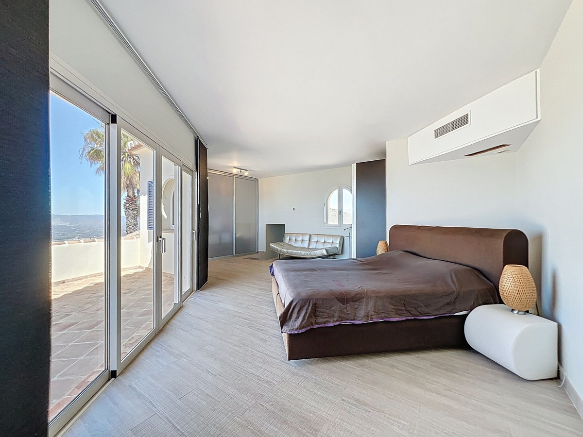 Imaginez-vous vous réveiller chaque matin bercé par la douce caresse de la Méditerranée dans cette villa d'exception. Véritable chef-d'œuvre architectural, cette demeure offre un style de vie incomparable, alliant harmonieusement des intérieurs spacieux à des panoramas à couper le souffle qui s'étendent jusqu'à l'horizon. Le séjour vous accueille avec une abondance de lumière naturelle grâce à ses baies vitrées coulissantes qui encadrent à la perfection la vue imprenable sur la mer d'azur. L'agencement ouvert crée une circulation fluide, idéale pour des réunions intimes comme pour de grandes réceptions, estompant la frontière entre luxe intérieur et paradis extérieur. Pour les passionnés de cuisine, la cuisine gastronomique est un rêve devenu réalité, équipée d'appareils ultramodernes et offrant un espace généreux pour concocter des repas mémorables. Dînez en plein air sur la vaste terrasse, où la douce brise marine sublime chaque instant. La somptueuse suite parentale, d'une superficie de 32,5 m², offre un havre de paix avec une vue panoramique sur l'océan. Commencez votre journée dans la salle de bains digne d'un spa, un véritable symbole de luxe et de confort. Le balcon privé est idéal pour savourer un café le matin ou un cocktail en fin de journée en admirant le coucher du soleil sur la mer. À l'extérieur, la terrasse carrelée en terre cuite est un véritable havre de paix. Profitez du soleil généreux d'Espagne, organisez des fêtes inoubliables ou laissez-vous simplement envoûter par la vue imprenable sur le littoral. Au-delà de sa beauté, cette villa offre une opportunité rare pour ceux qui souhaitent se lancer dans une activité commerciale, comme une maison d'hôtes. Avec ses 4 chambres à louer, chacune dotée de sa propre salle de bain et d'une entrée indépendante, la propriété a déjà fonctionné avec succès comme maison d'hôtes, ne recevant que des avis élogieux. En plus des chambres à louer, une chambre privée avec salle de bain se trouve au premier étage, ainsi qu'une autre chambre avec salle de bain au sous-sol. La cuisine intérieure entièrement équipée et la magnifique cuisine extérieure offrent tout le confort nécessaire à la gestion d'une activité prospère, tandis que le grand garage souterrain offre un espace de rangement généreux. Située à Algarrobo, à Malaga, cette propriété garantit un accès facile aux commodités de renommée mondiale, aux plages immaculées et à une riche vie culturelle, tout en offrant un cadre idéal pour savourer pleinement l'art de vivre méditerranéen. Que vous recherchiez une luxueuse résidence familiale, une opportunité d'investissement ou simplement un coin de paradis, cette villa répond à toutes vos attentes. Bien plus qu'une simple maison, c'est un véritable art de vivre. Vivez l'apogée de la vie méditerranéenne dans cette villa extraordinaire : votre rêve de posséder un coin de paradis est désormais à portée de main. Ne manquez pas cette occasion unique d'accéder à un niveau de luxe, de beauté et d'opportunités inédit. Nous serons ravis de vous présenter prochainement cette propriété d'exception, en personne ou virtuellement. Car ce monde est unique, à l'image de notre Axarquía. En Andalousie. Sur la Costa del Sol. Ici, sous le soleil de la vie…