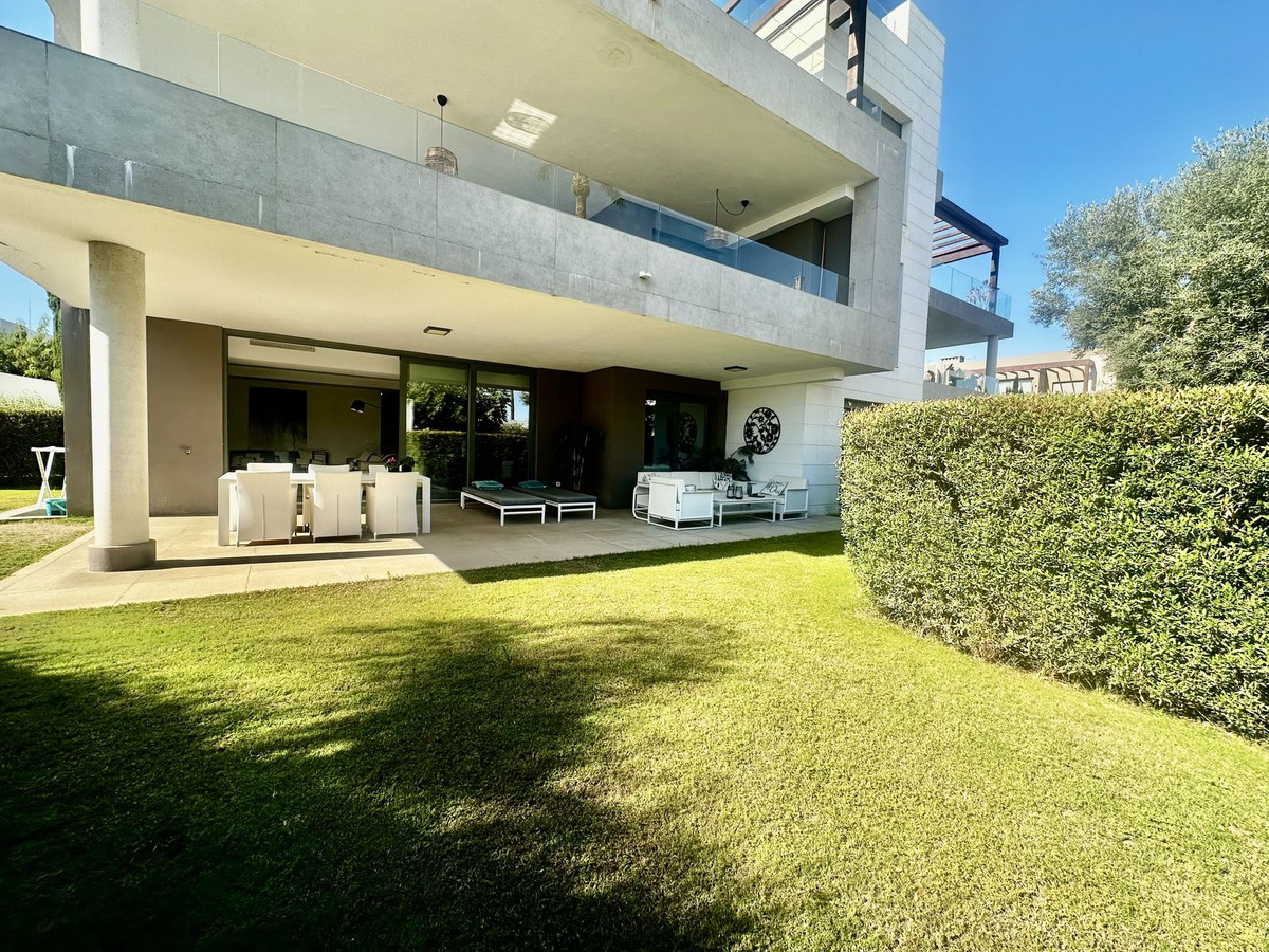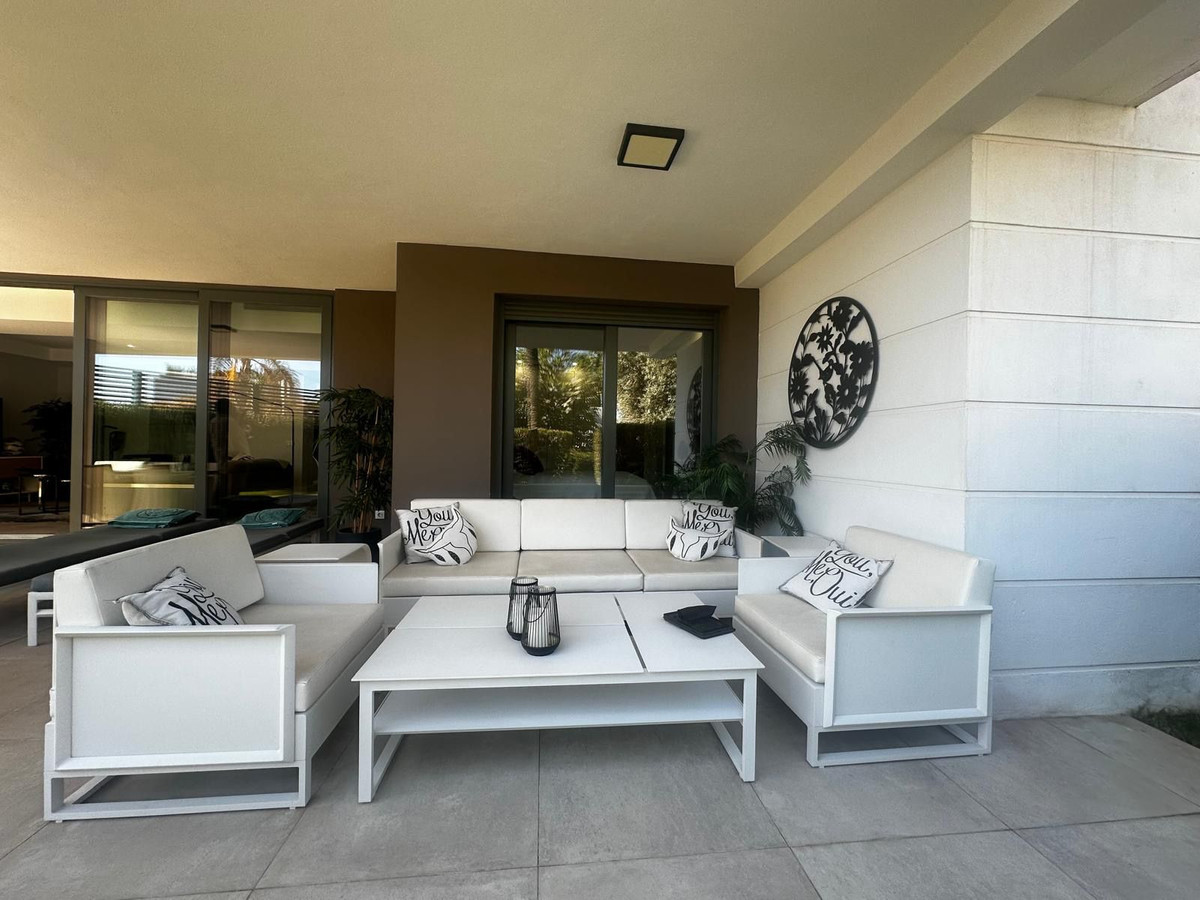 Appartement moderne et élégant au rez-de-chaussée avec 2 chambres et 2 salles de bains, situé dans le quartier recherché de Cancelada (Estepona), à seulement 15 minutes de Marbella, 10 minutes de Puerto Banús et 5 minutes de l'hôtel exclusif Anantara Villa Padierna et des terrains de golf Flamingos.