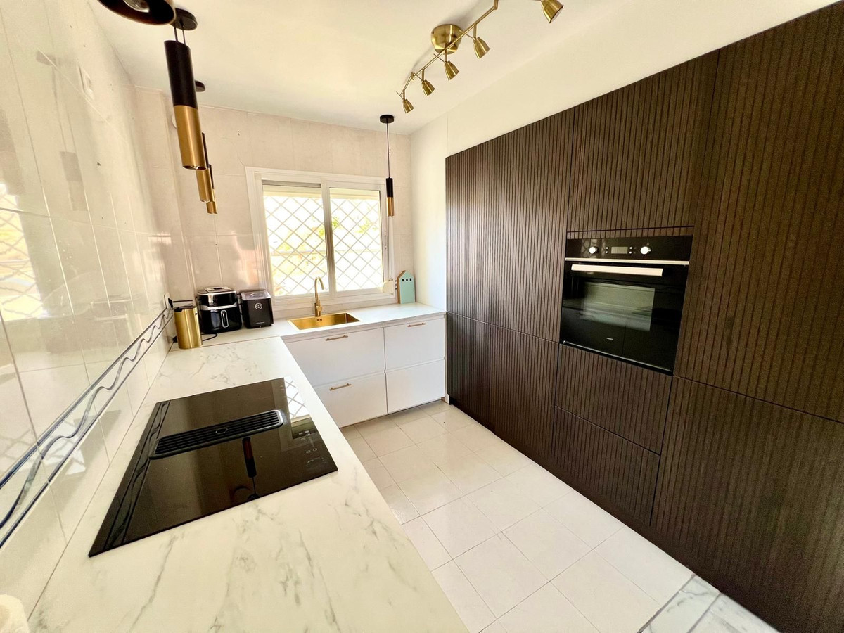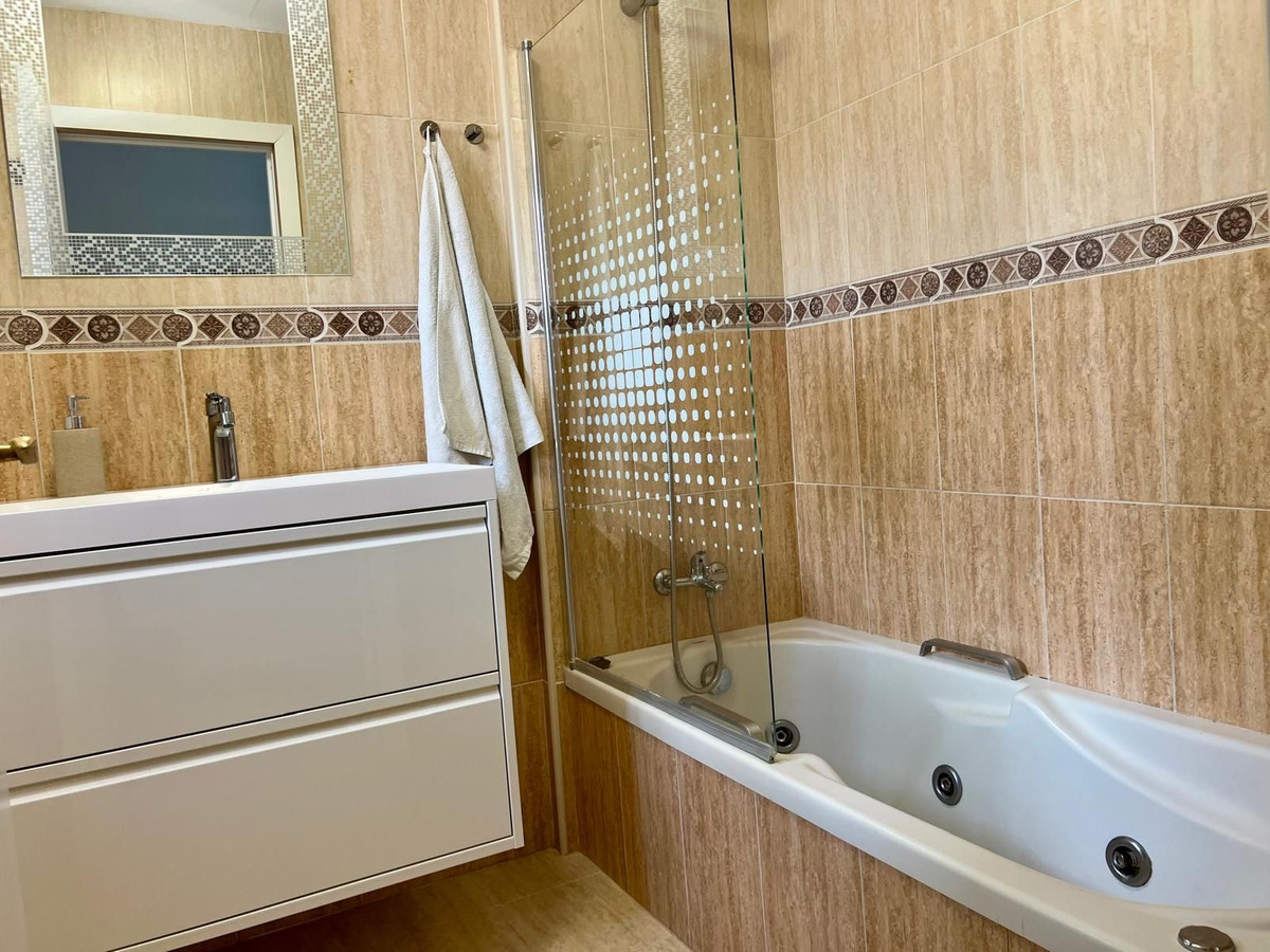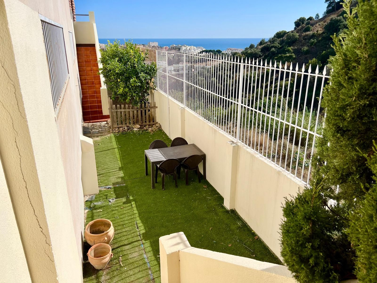 Townhouse in Torrequebrada, Benalmádena. Direct access from the house to a private garage for two cars. Private heated pool and terraces +extra garden/patio as it's a corner unit. Pool has a new motor/pipes and heating inverter.