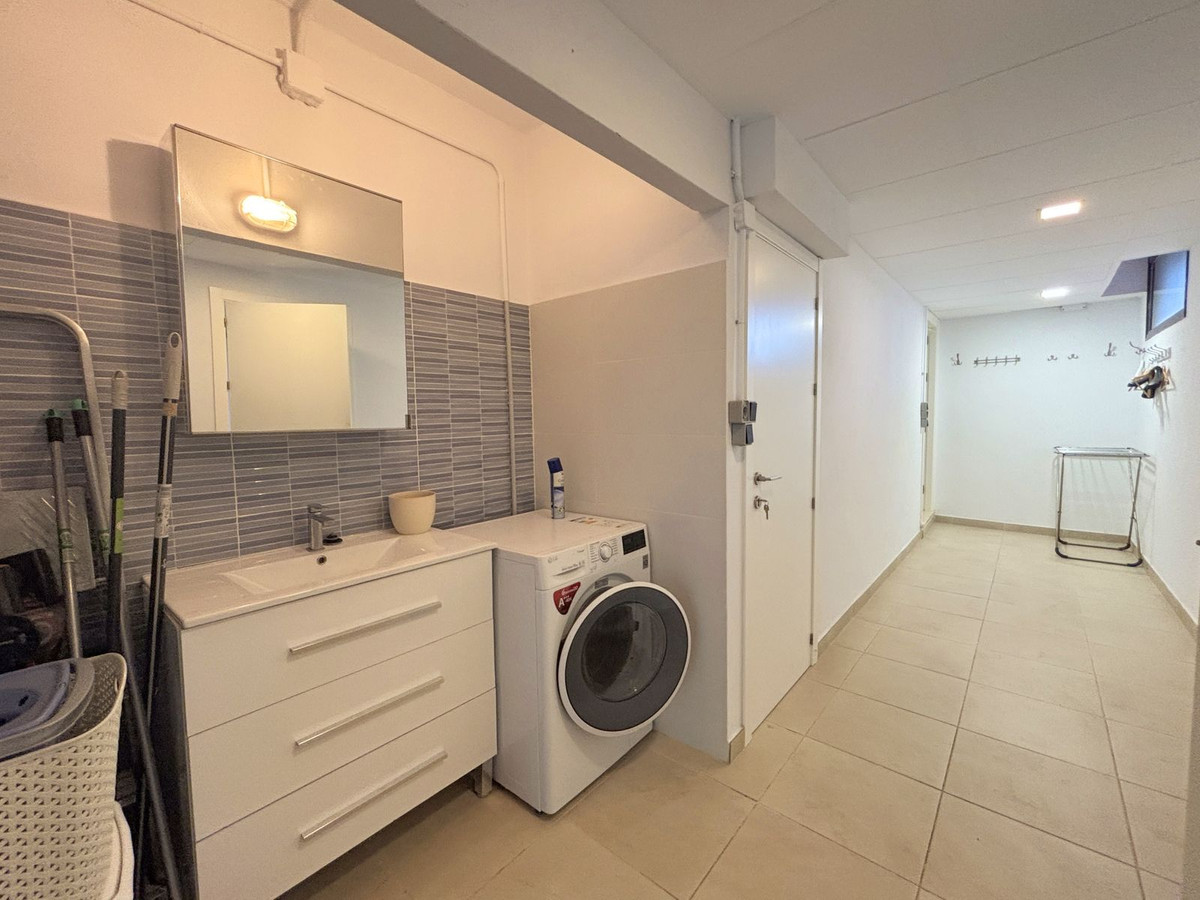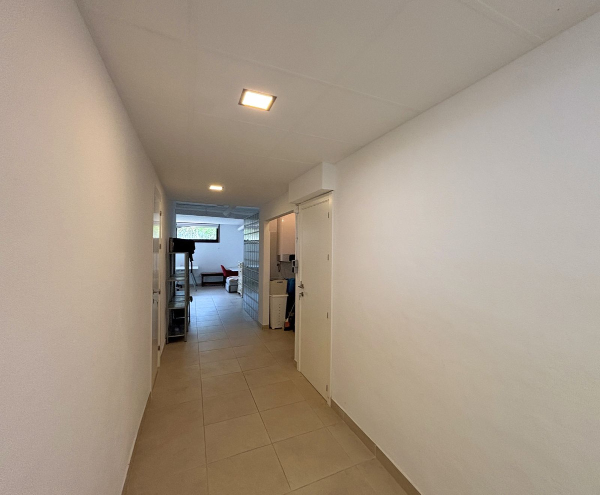 Cette maison lumineuse offre des finitions de grande qualité et est équipée d'un système domotique. Elle comprend un garage souterrain privé actuellement aménagé en pièce ventilée, idéale pour un bureau, une salle de sport ou une chambre d'amis. Au rez-de-chaussée, vous trouverez une cuisine entièrement équipée, des toilettes invités et un vaste séjour/salle à manger donnant sur une terrasse fermée par des baies vitrées, parfaite pour en profiter toute l'année.