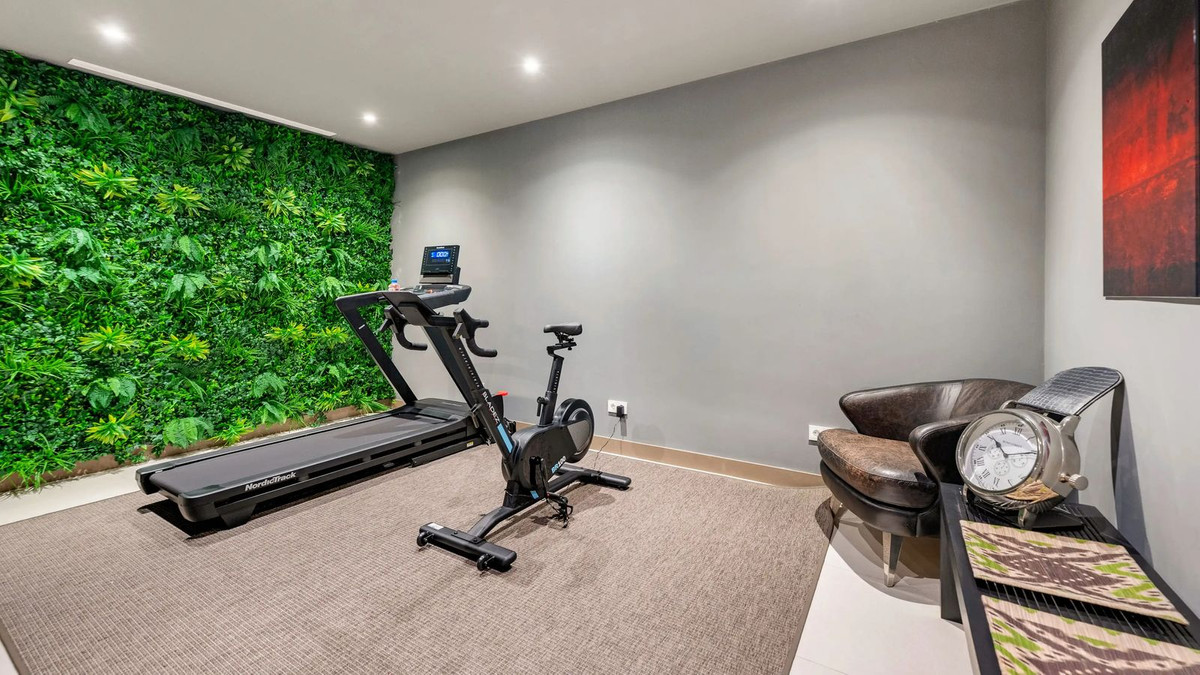 Le niveau inférieur est dédié au bien-être et aux loisirs, avec une salle de cinéma privée, un salon supplémentaire, un bar élégant et un espace de travail discret, idéal pour le télétravail. Un espace bien-être compact est parfaitement adapté à la pratique du yoga ou à des séances d'entraînement légères.