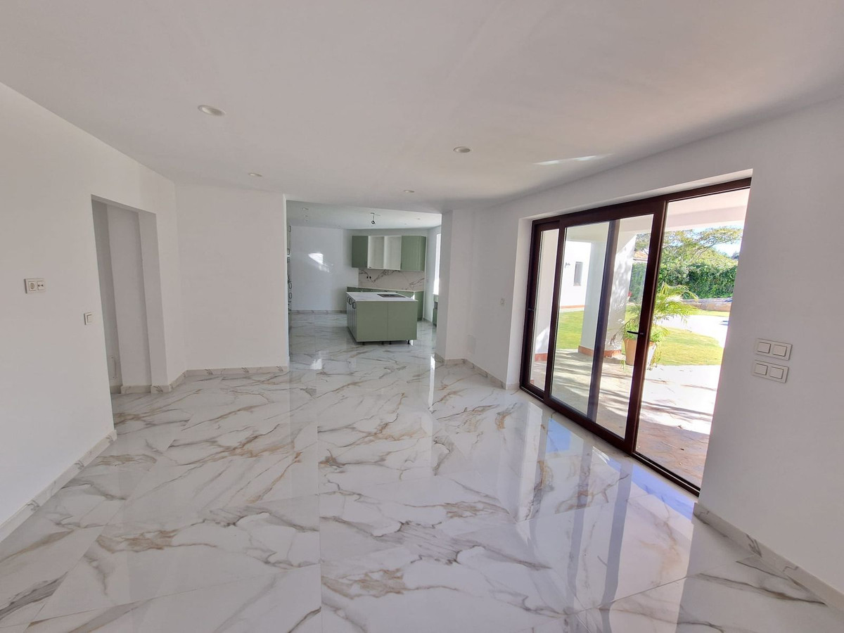 Villa individuelle à Sotogrande. Entièrement rénovée, elle comprend 4 chambres, 4 salles de bains, un WC invités, un vaste séjour avec cheminée, un grand salon et une grande cuisine dînatoire. Garage fermé, grand jardin, piscine et court de tennis. Surface habitable de 682 m² sur un terrain de 2 400 m².