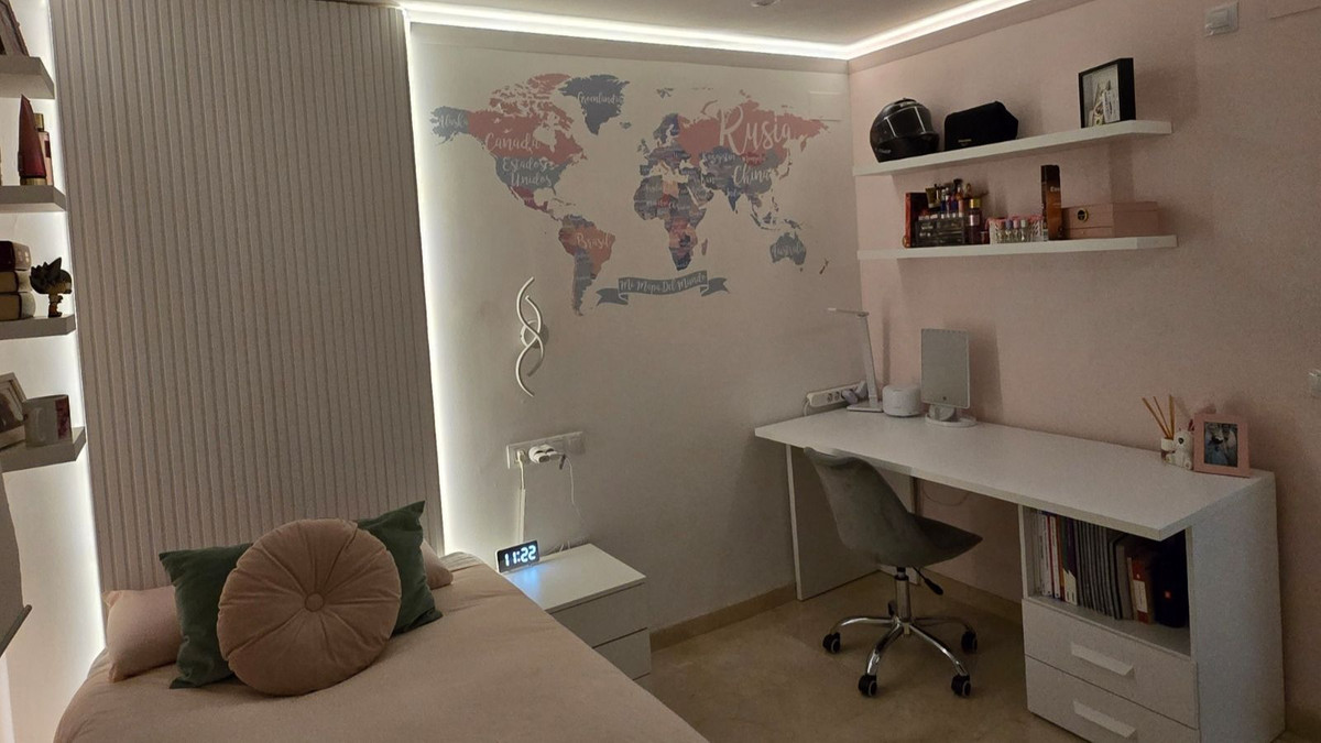 Designed to maximise light, comfort and style, the interior offers a spacious and luminous living-dining area with a bioethanol fireplace and pre-installation for a traditional fireplace, creating a refined yet cosy ambiance throughout the year. The property comprises three double bedrooms with fitted wardrobes and three bathrooms, one of which has been adapted for laundry and storage purposes. The bathrooms feature elegant finishes, including a designer walk-in shower and a bathtub, combining functionality with modern design.