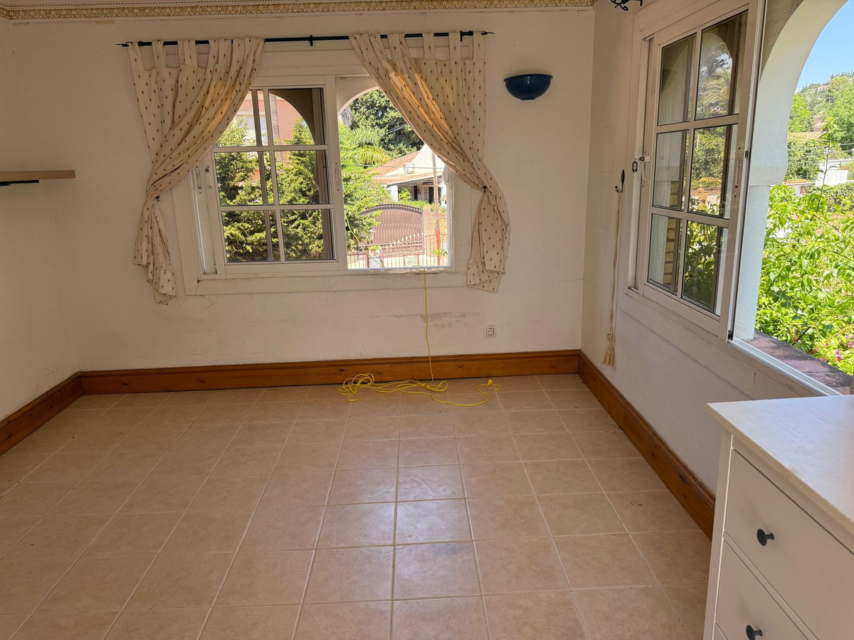 Découvrez cette villa à rénover, située sur un vaste terrain et offrant une vue imprenable sur la mer, dans le prestigieux quartier de La Sierrezuela, à Mijas.