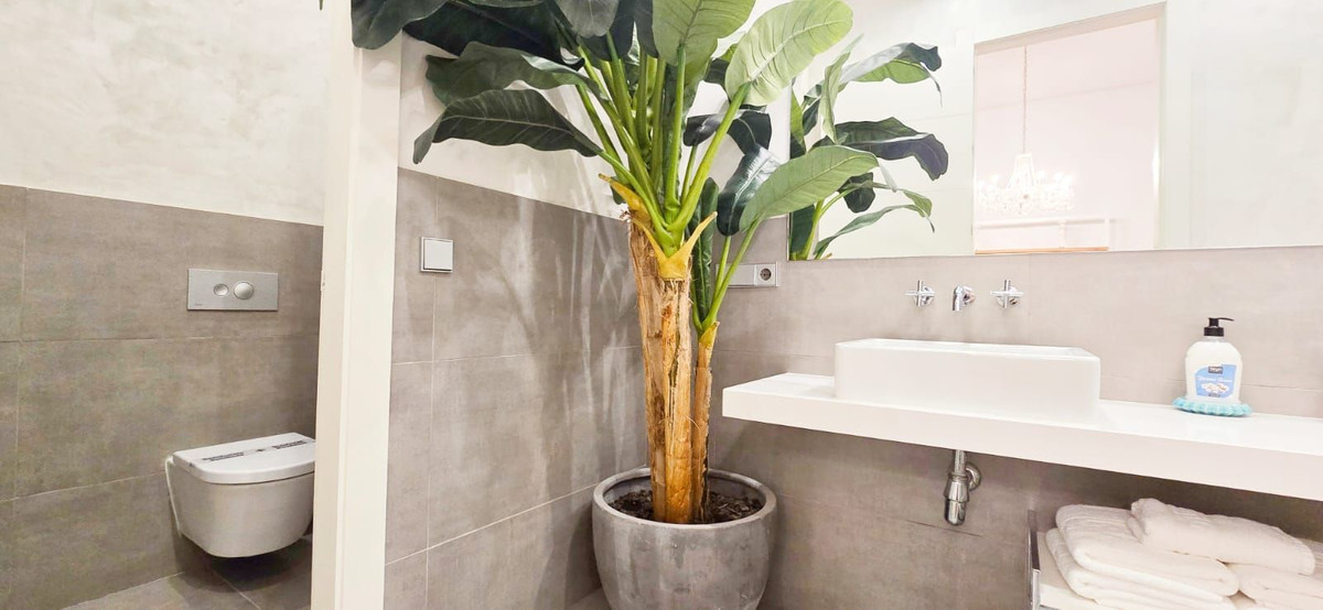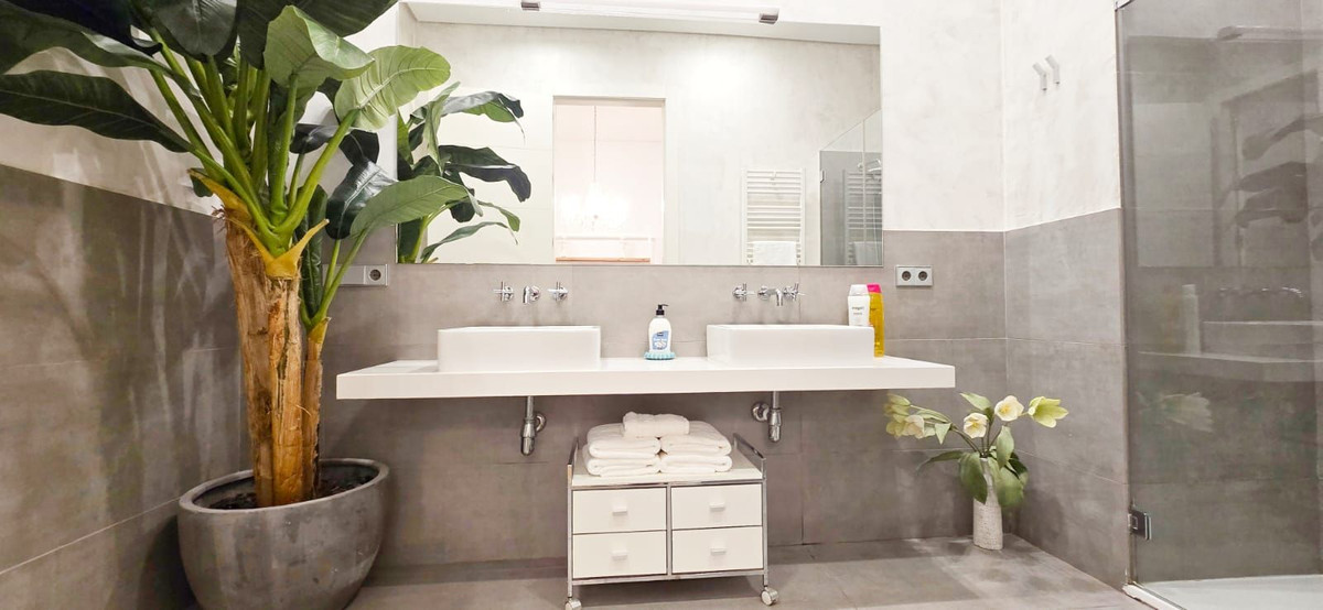 Ce bien comprend une salle de bains spacieuse avec douche à l'italienne, des sols en bois et en porcelaine, la climatisation centrale et un équipement électroménager complet. Chaque détail a été soigneusement pensé.